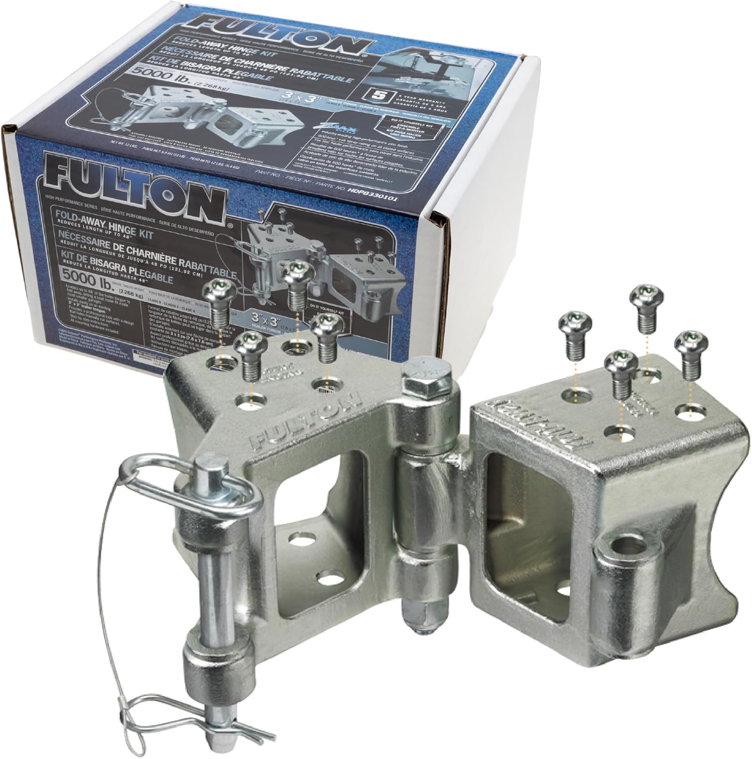 Fulton HDPB330101 Fold-Away Hinge Kit, Bolt On, 5,000 lbs. Capacity, 3 Inch x 3 Inch, Silver, Includes all mounting hardware
