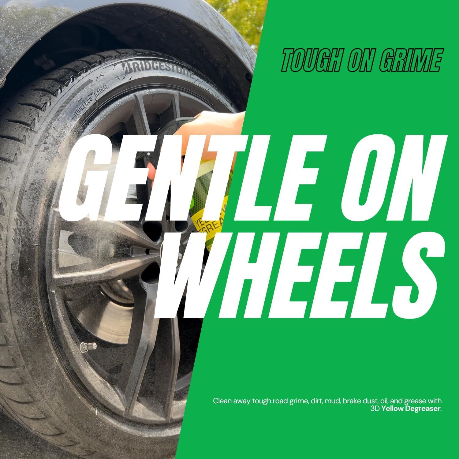 - Tough on Grime, Gentle on Wheels: 3D Yellow Degreaser breaks down stubborn brake dust, silicone residue, road grime, and tire gunk without damaging your rims or wheel wells. Its acid-free formula makes it tough on mess but safe for all wheel finishes—chrome, painted, polished, and more