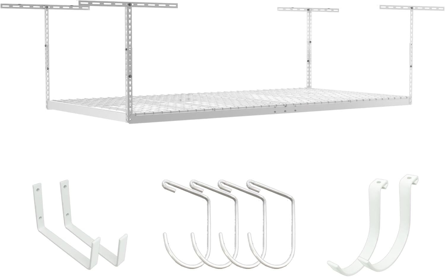 SafeRacks 4x8 Overhead Garage Storage Rack Heavy Duty - White (12"-21") - Holds 600 lb