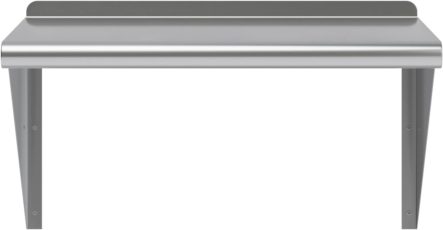 - Its professional, modern and sleek design makes this metal floating shelf perfect for use in any residential or commercial kitchen, food truck, garage, closet, laundry room, utility and equipment room, lab, appliance shelf for toaster and microwave, etc.
