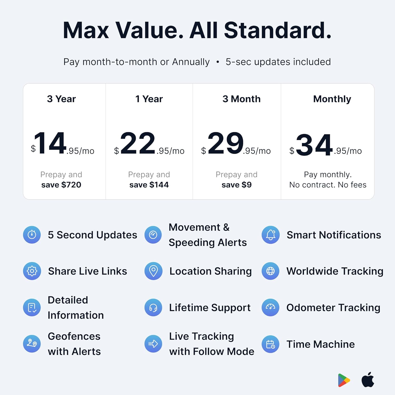 - LOW COST PLAN REQUIRED: Quickly download our easy-to-use app. Activate the device, choose your plan, and start tracking. Subscriptions as low as $14.95/mo. Get 24/7 support on GPS trackers with an active subscription.