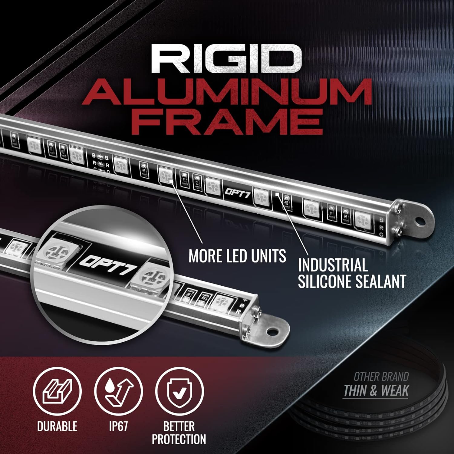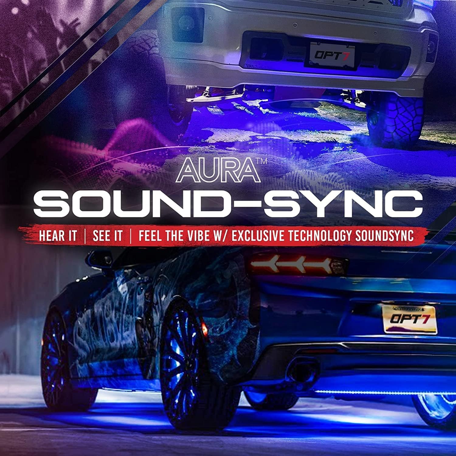 OPT7 Aura Aluminum LED Underglow Kit for Car with Remote Control, Exterior Neon Accent Under Glow Lights, Rigid Waterproof Strip Lights, Music Soundsync Mode, Multicolor RGB Light Bars