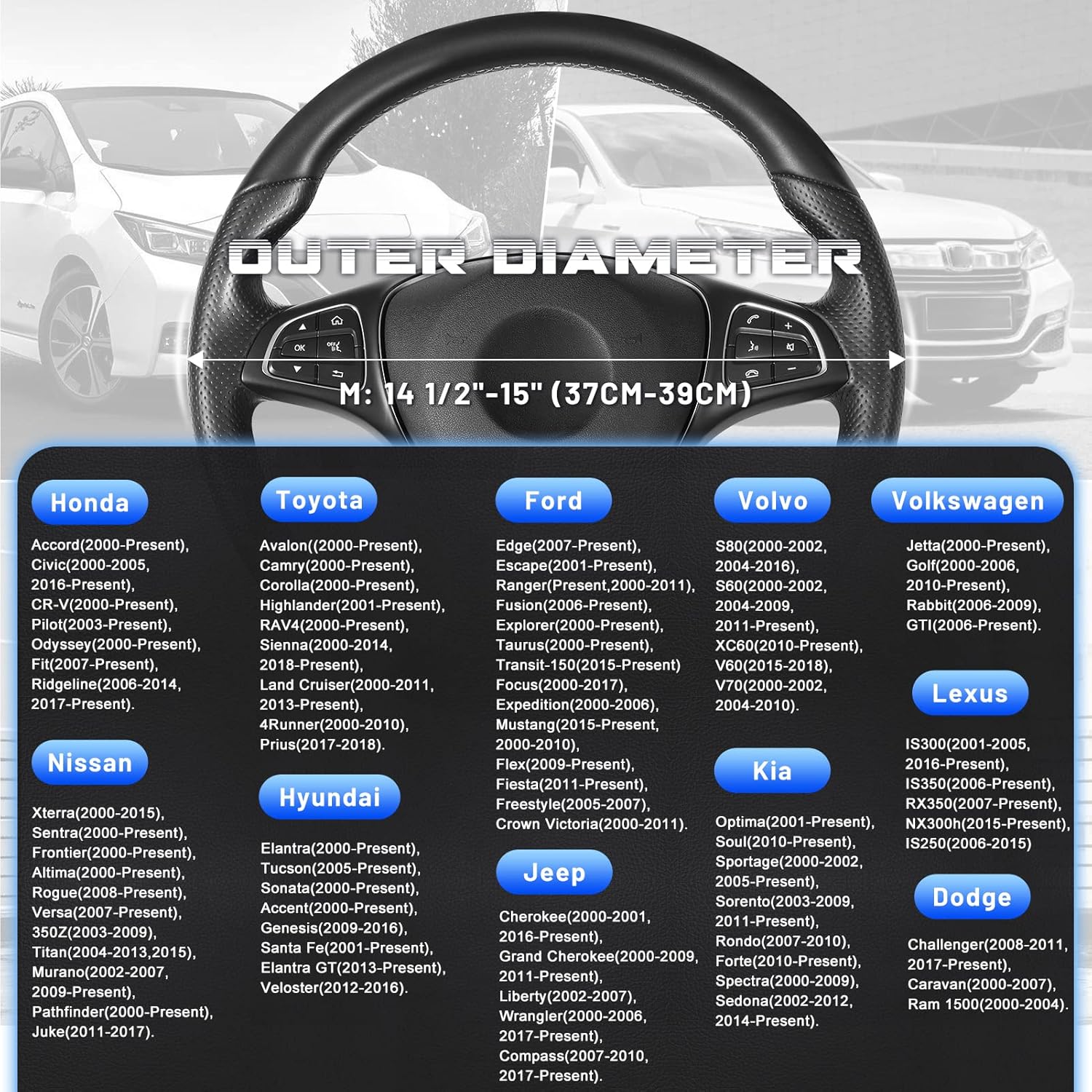 - HAND-SAVER: The fine and supple microfiber leather is much softer than factory-installed steering wheel. It provides a comfortable touch when driving, helps reduce driving fatigue, and brings you a pleasant driving experience.
