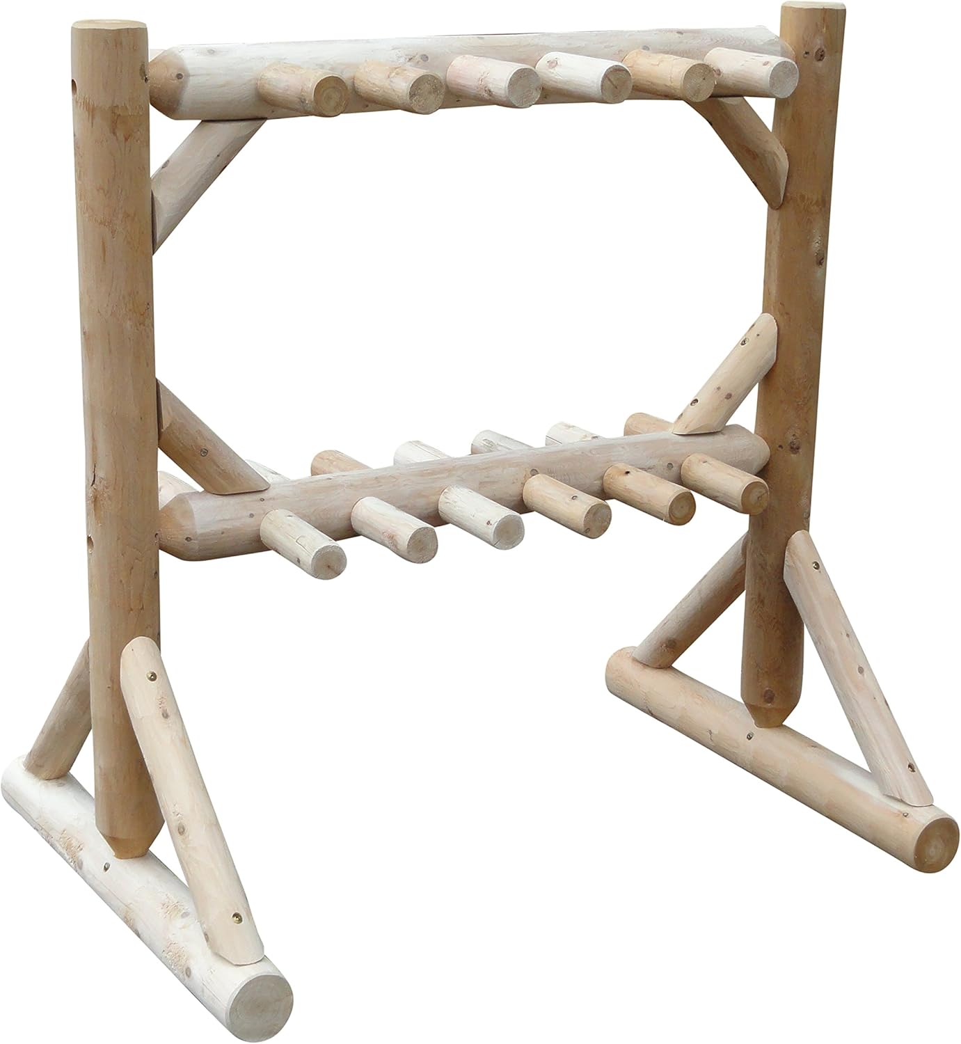 11-Place Freestanding Log Ski Rack Holder, Indoor & Outdoor Snowboard Racks, Standing Storage, Garage Racks for Snow Skis, Durable Snowboard Rack Garage Storage Organizer - Unfinished