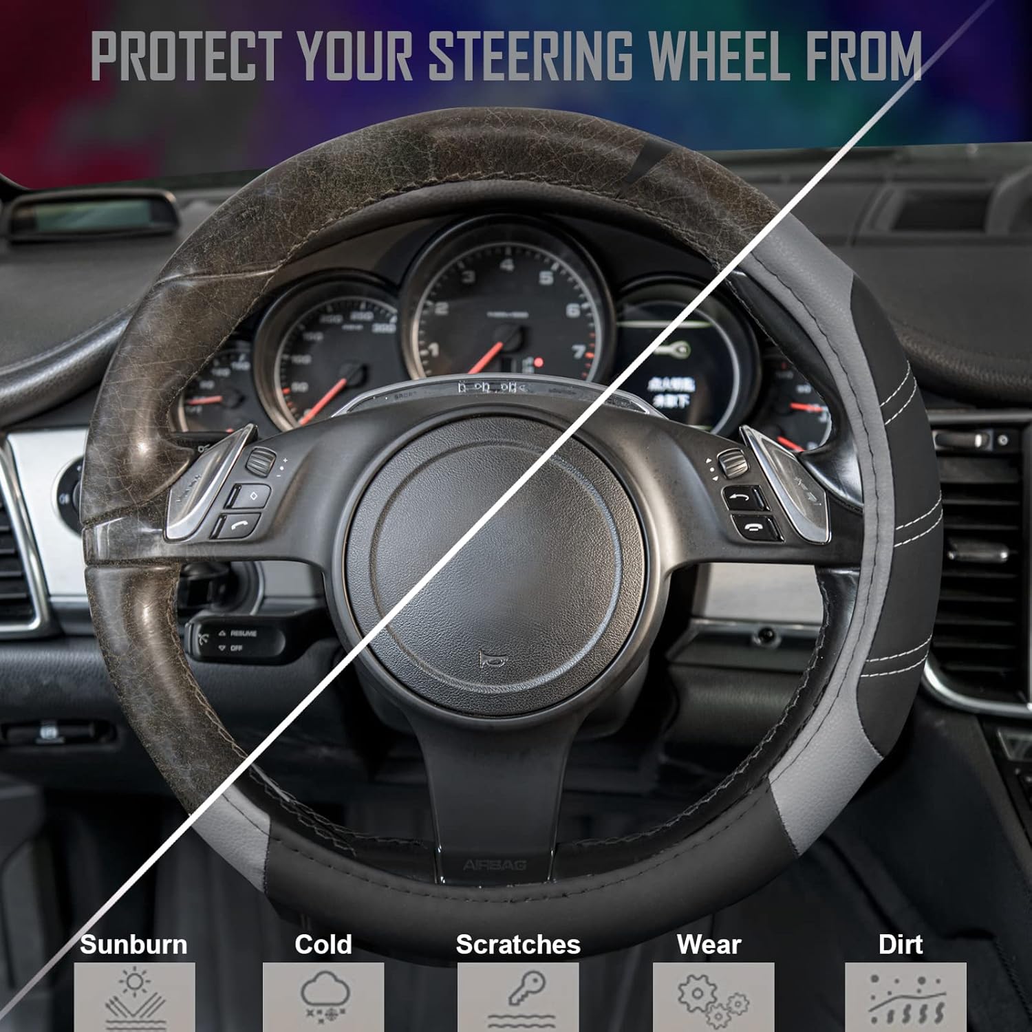 - HIGH QUALITY: Made Of Microfiber Leather Steering Cover.