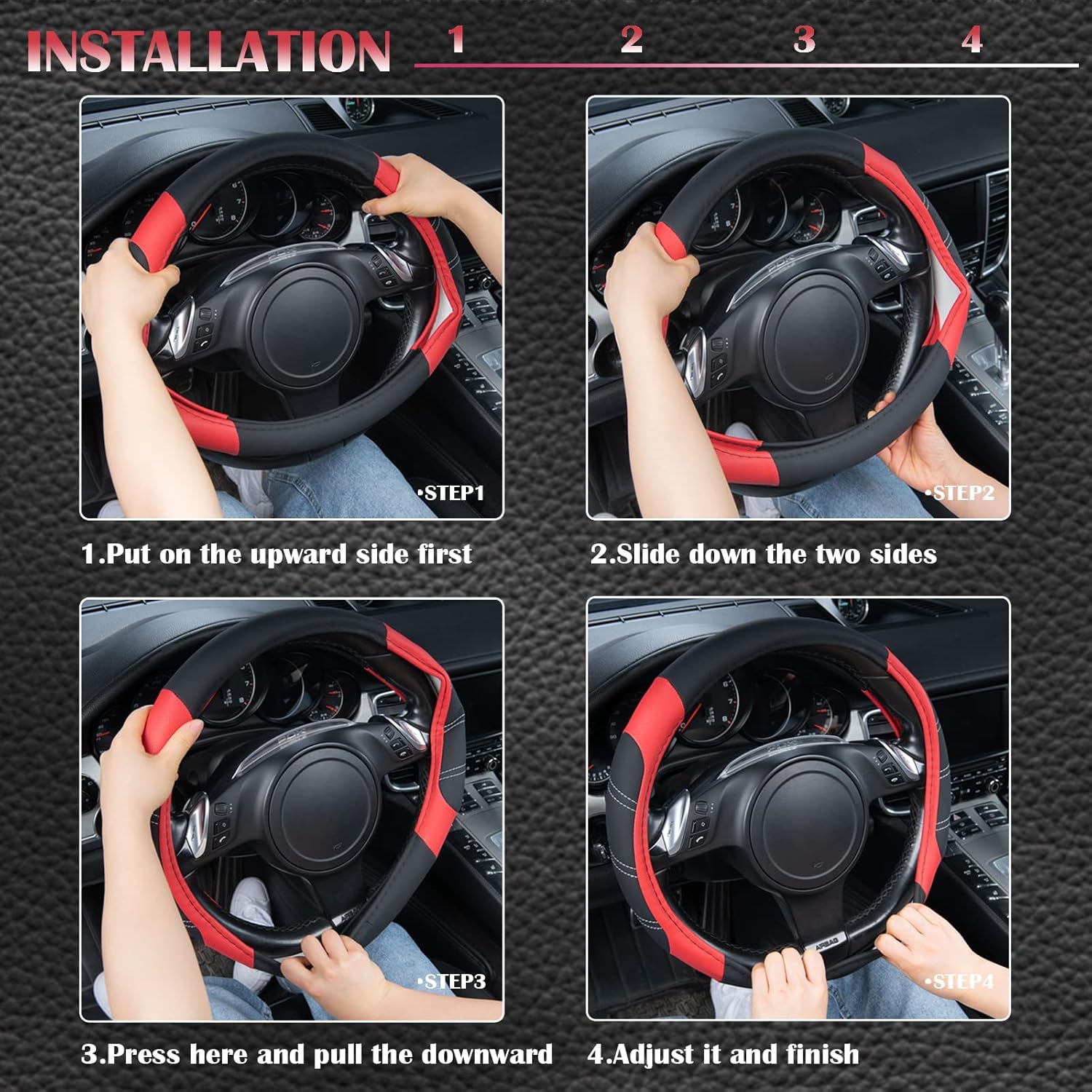 - UNIVERSAL FIT:Fits for Standard-size steering wheels with diameter 14 1/2 inch to 15 inch(37cm to 39cm)