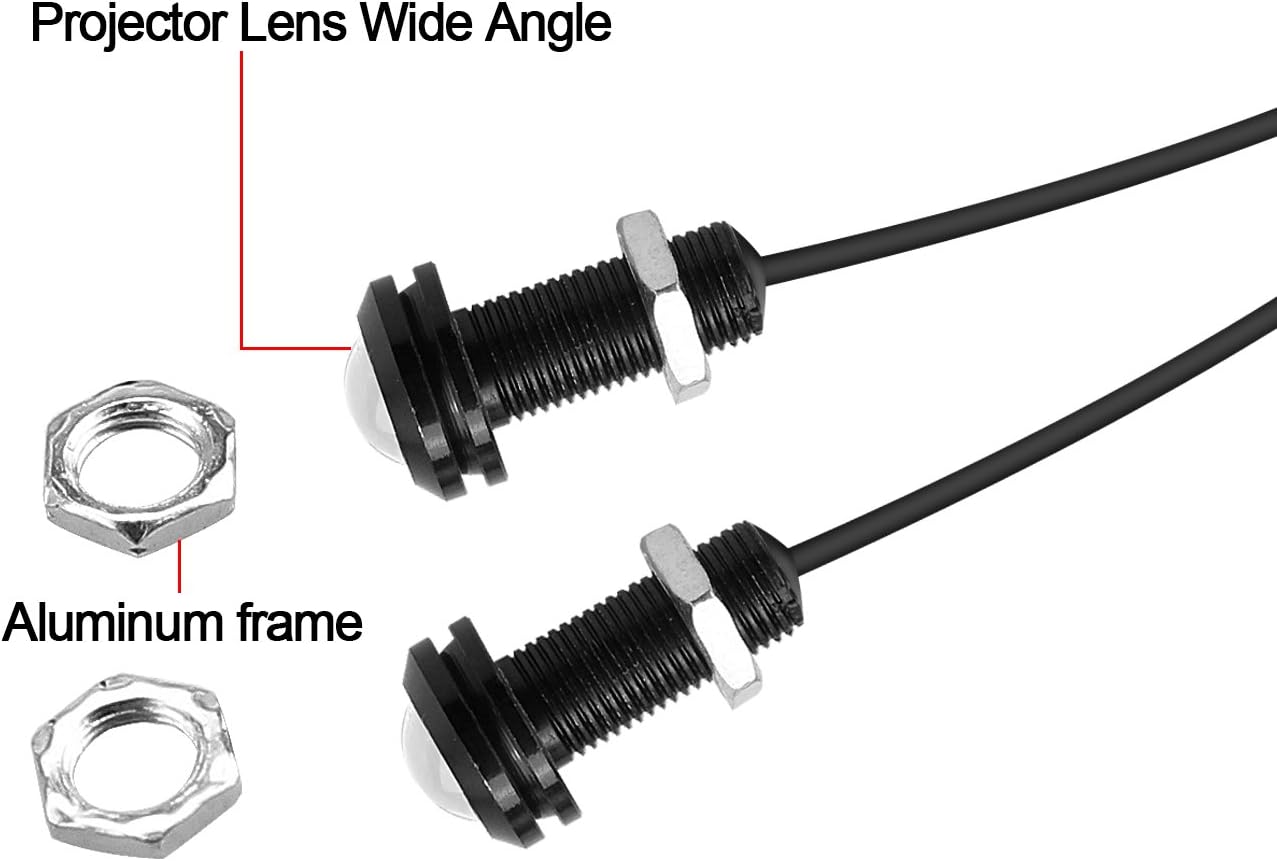 LEADTOPS 10Pcs 18mm 12V Red Eagle Eye LED Car Fog DRL Daytime Running Light Backup Reverse Tail Rock Lights Small bulb (Red light, Black Case)