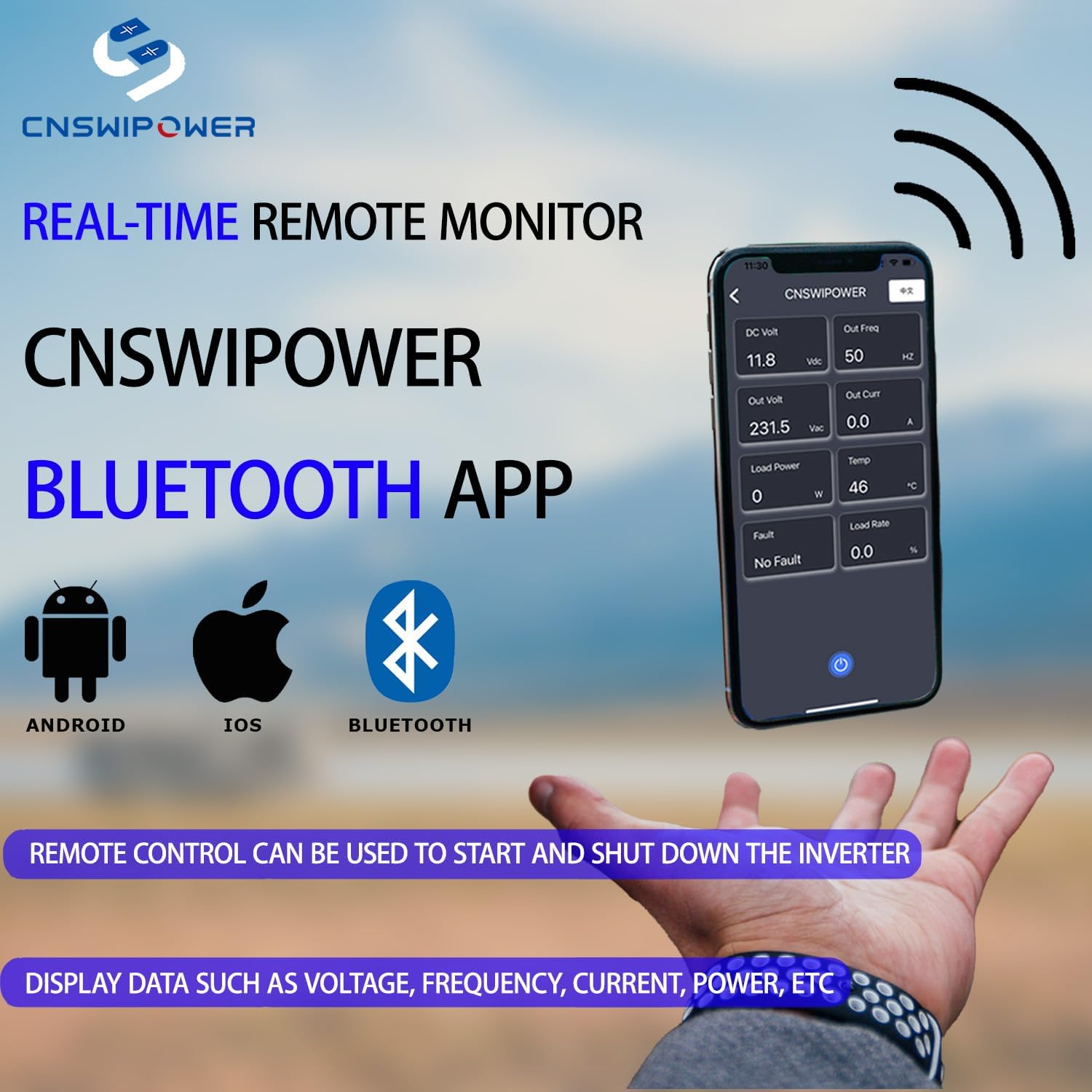 - 【LCD display and remote controlI】nverter with remote control: The cable is 5 meter long, and the long cable will help you easily control the on/off of the inverter. The LCD display is easy to observe the input voltage, output power and protection mode.