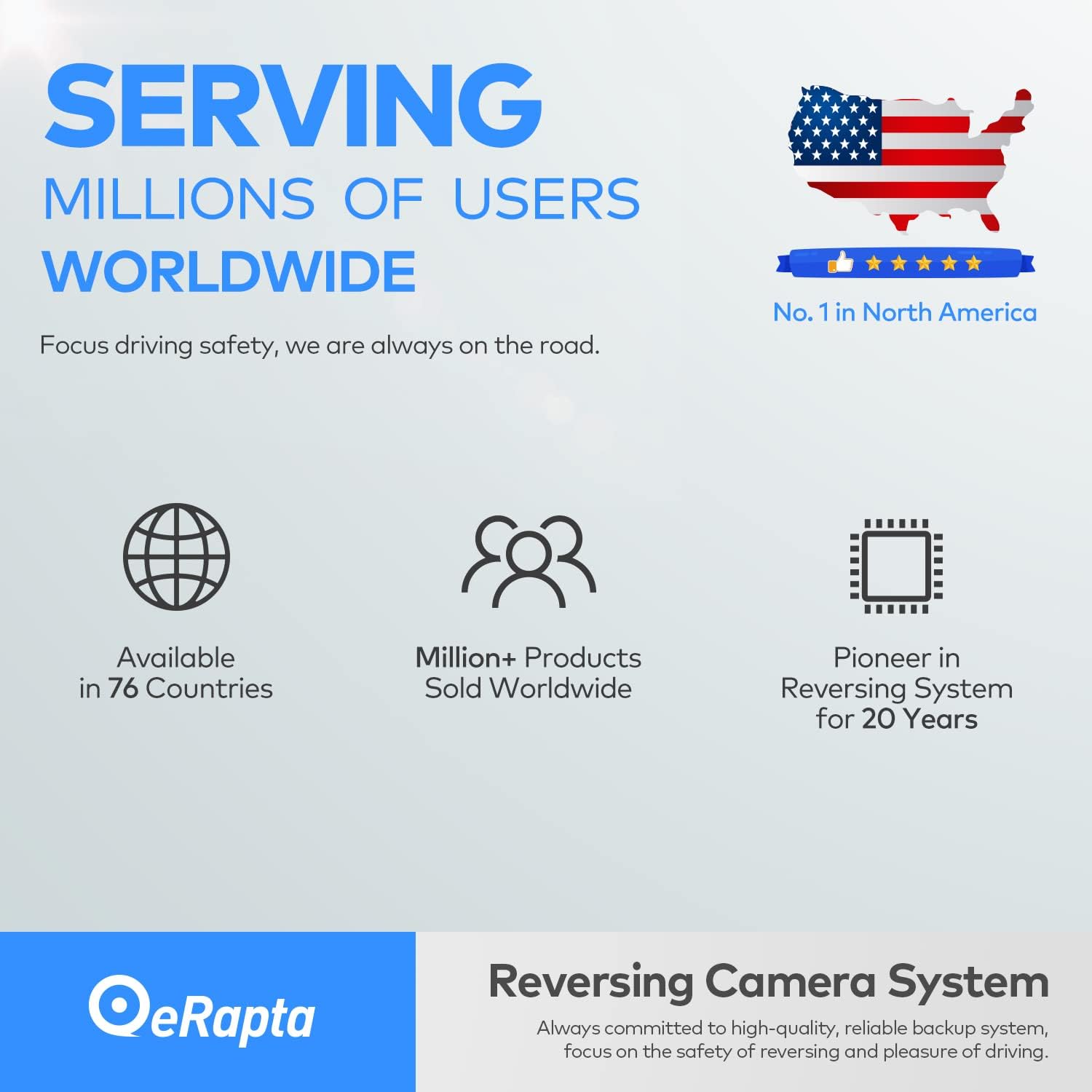 - What You Get: 1x Backup Camera, 2x Metal Brackets, 1x AV Cable ,1x Power Cable ,1x Installation Manual, Two Year Warranty and Lifetime Technical Support. eRapta support department will always be there for any consultation.