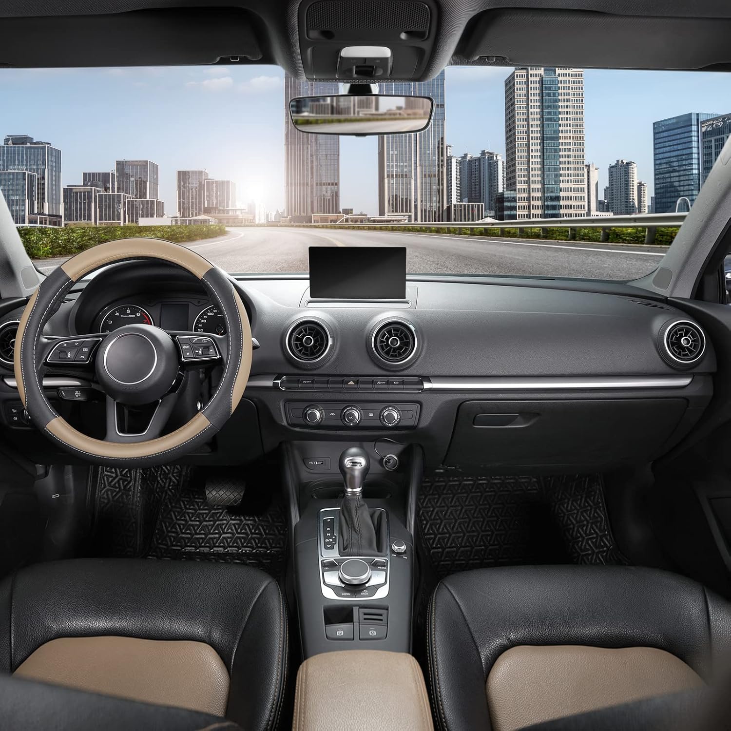 - ARMOR UP YOUR CAR INTERIOR: The durable and easy-to-install steering wheel cove is the premier option for covering an old or worn original factory steering wheel. The delicate splicing design adds texture to the interior of your car.