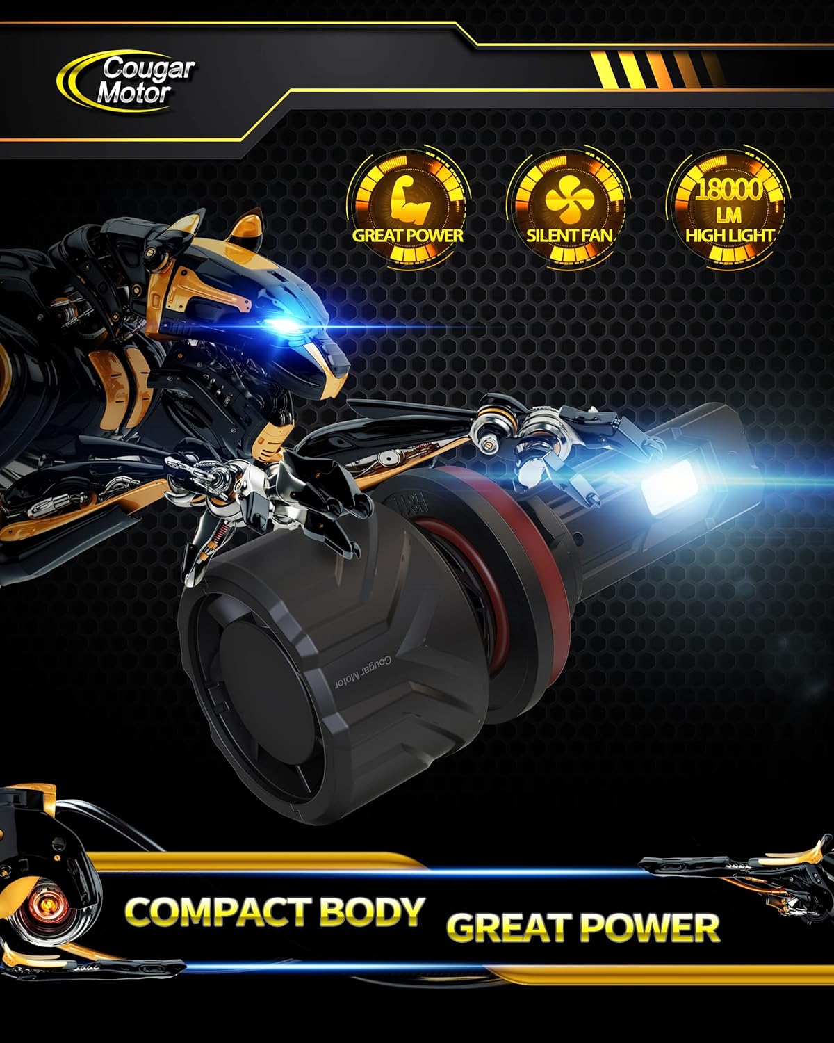 - POWERFUL SILENT COOLING: Cougar Motor fog bulbs are made of an aviation aluminum body and a high-speed fan, you can enjoy quiet comfort while high speed dissipates heat, making a lifespan of over 50,000 hours.