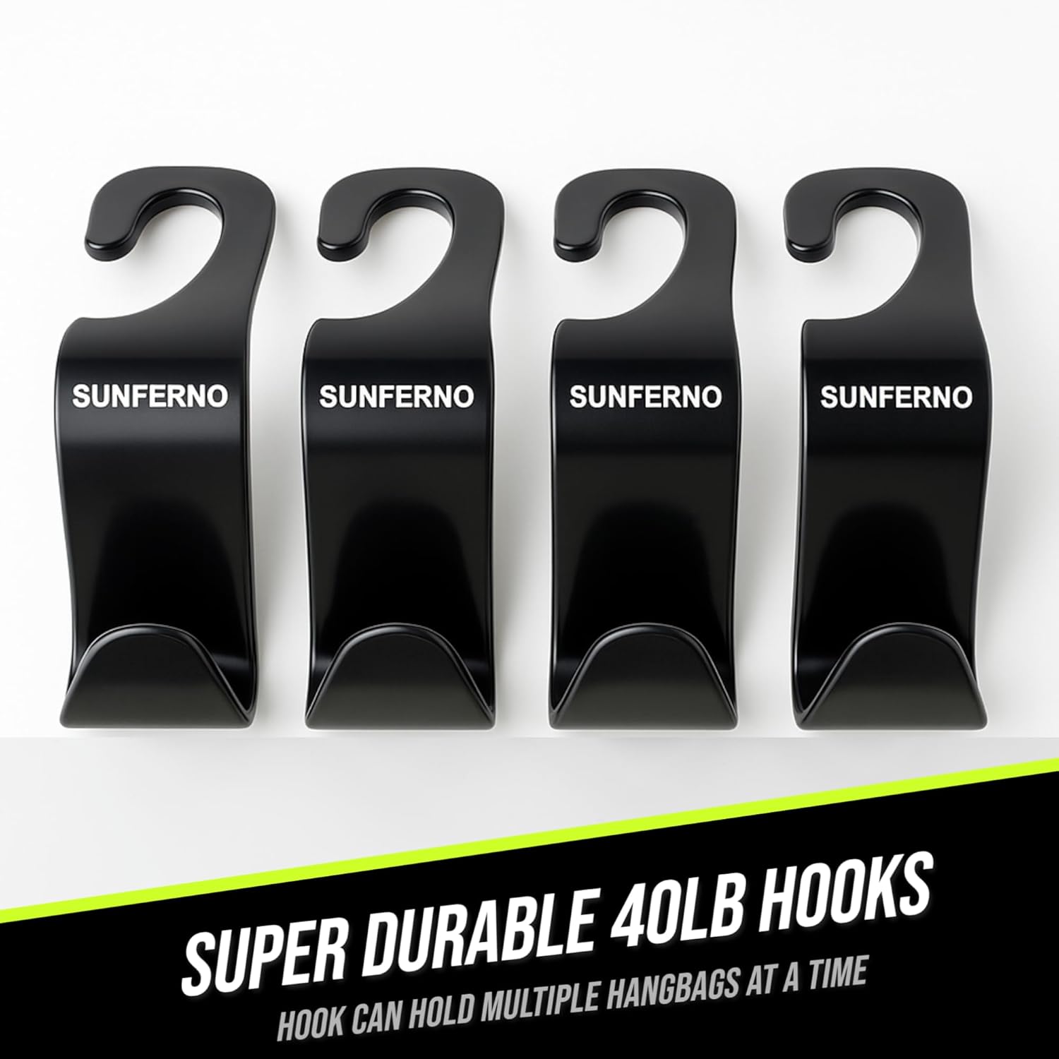 - SECURE & STRONG HOLD – NO MORE LOOSE HOOKS – Unlike flimsy alternatives, our headrest hooks for car lock firmly onto the seat, preventing sudden drops. Holds up to 44 lbs, making them the perfect car purse hook for heavy bags, backpacks, and groceries.