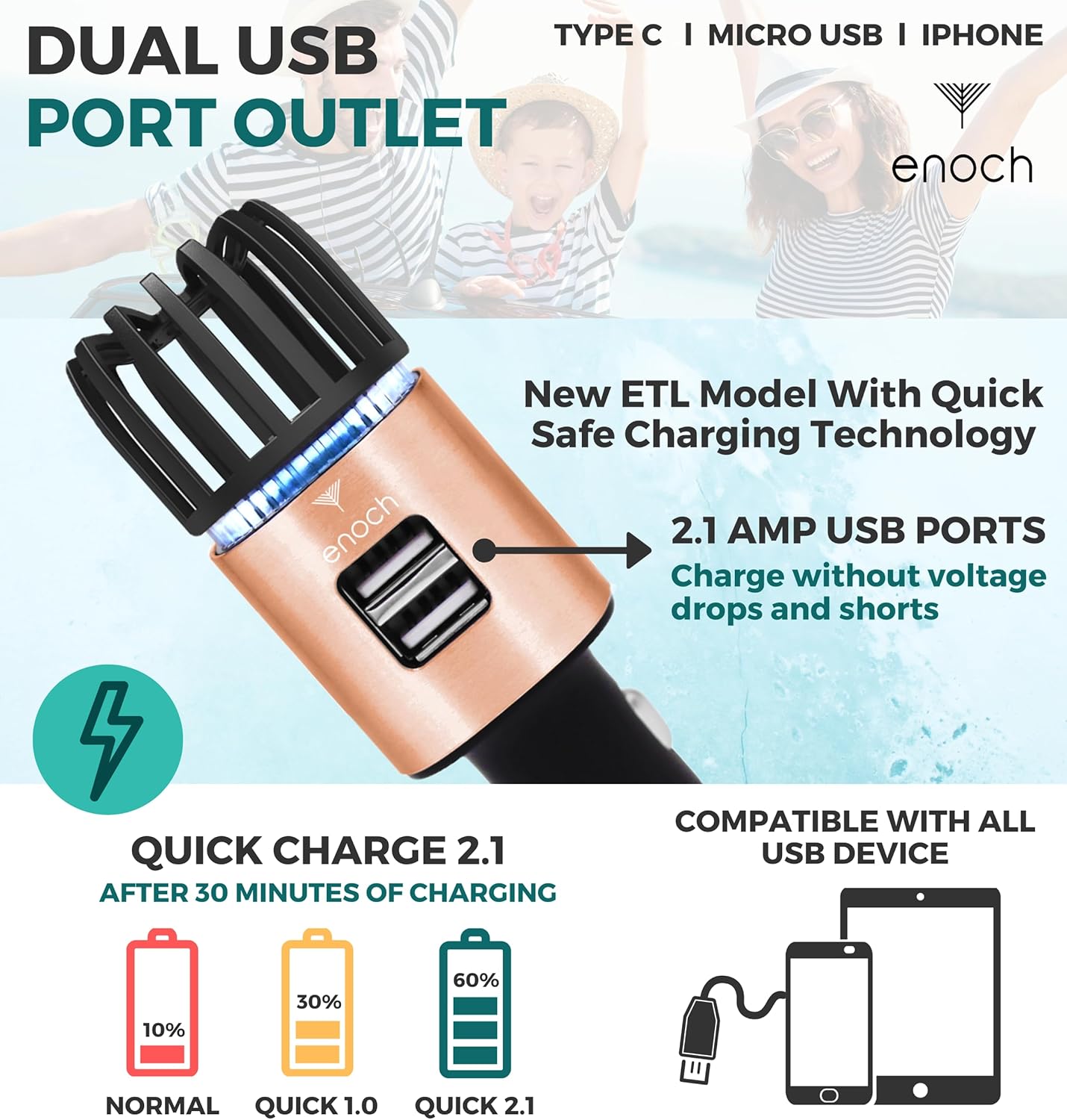 - 【ETL Certified and CARB Compliant for Safe Driving Use】: The Enoch air purifier is ETL certified and CARB compliant, meeting top safety and emission standards for car environments. A soft blue LED light helps you easily locate the device and USB ports in dark settings. Drive with confidence knowing your air is clean and the device is fully tested.