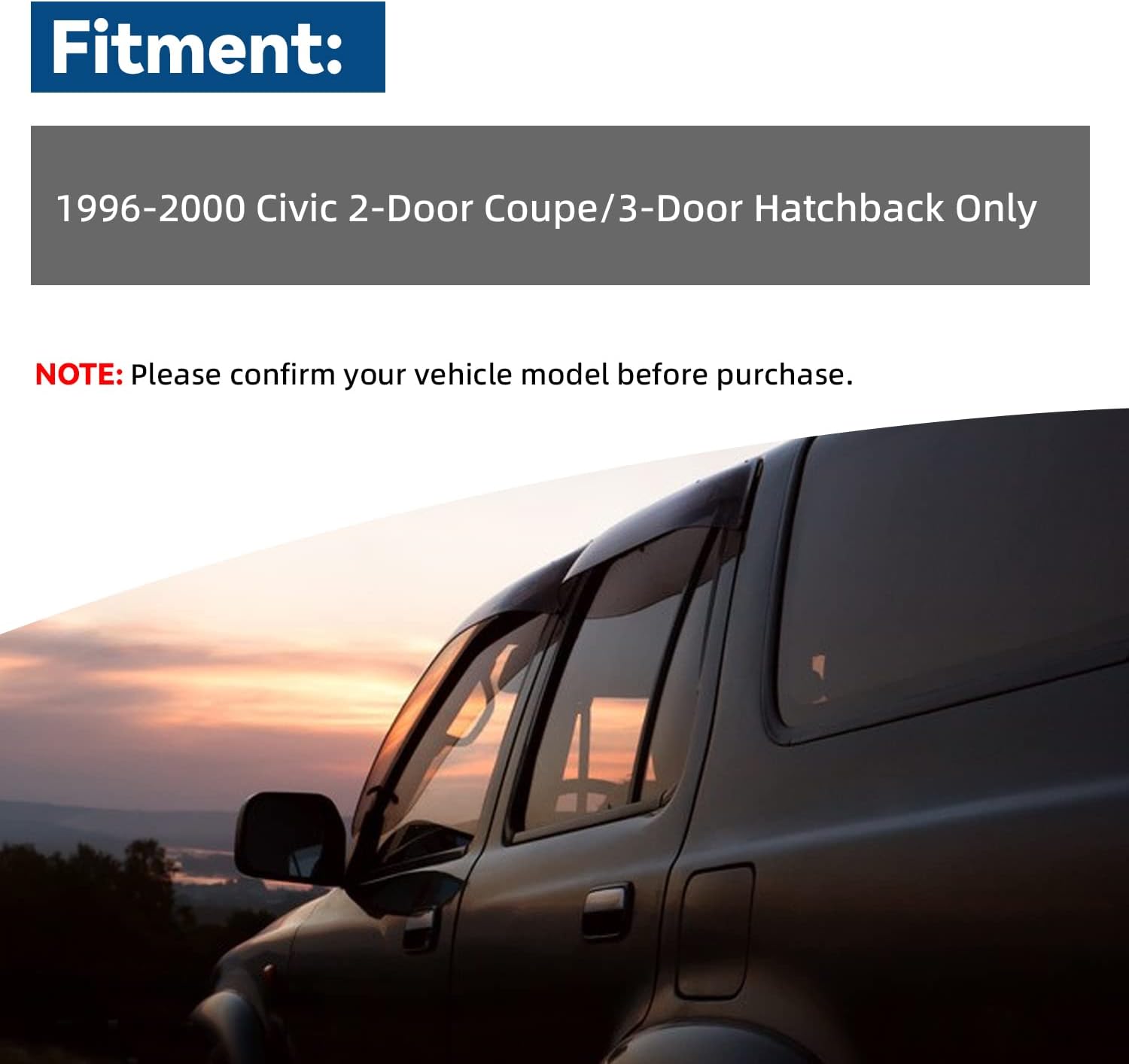 2pcs Front Smoke Sun/Rain Guard Outside Mount Tape-On Window Visors Compatible with 96-00 Civic 2-Door Coupe/3-Door Hatchback