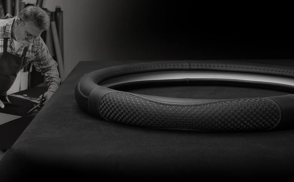 - 🌹🌹🌹🌹Leather Steering Wheel Cover : Super fiber soft leather patterned embossed design, soft, wear-resistant, non-skid and stable, gives you more control on the road.natural rubber health environmental protection odor free compared with other similar products, safer, more healthy and stable, suitable for all seasons. It is a perfect gift for Birthday, Christmas or any other suitable occasion.