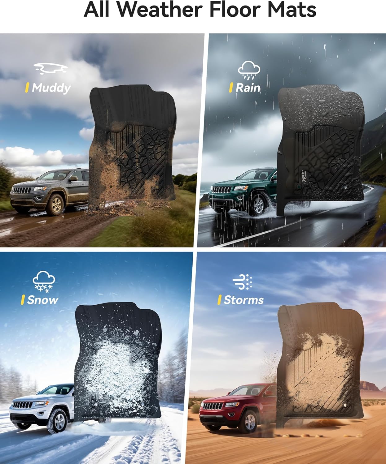 - ALL-WEATHER GRAND CHEROKEE CAR MATS: These durable TPE rubber car mats can prevent stain liquid snow mud and debris from contaminating your carpet. It is a must-have for your car protection all year round.