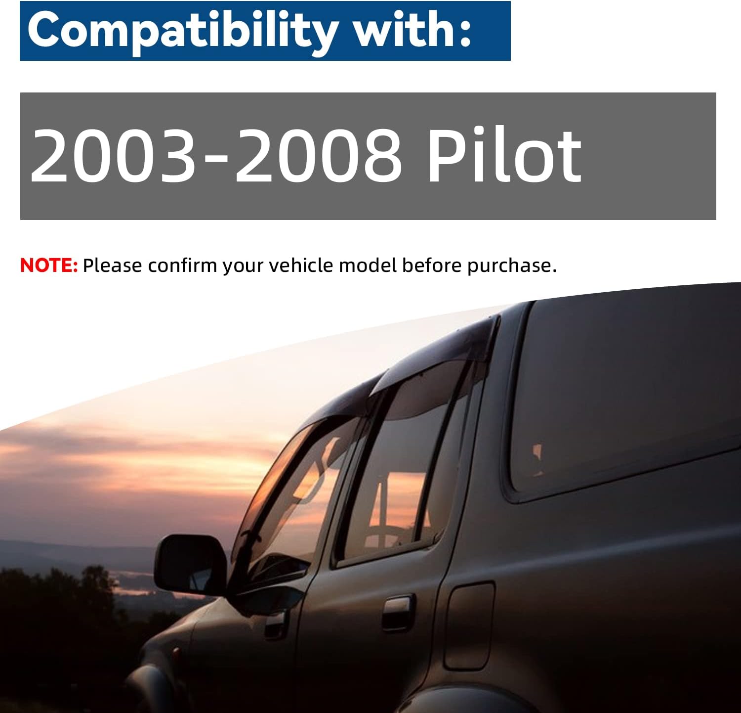 Set of 4 Front+Rear Smoke Sun/Rain Guard Outside Mount Tape-On Acrylic Window Visors Compatible with 03-08 Pilot