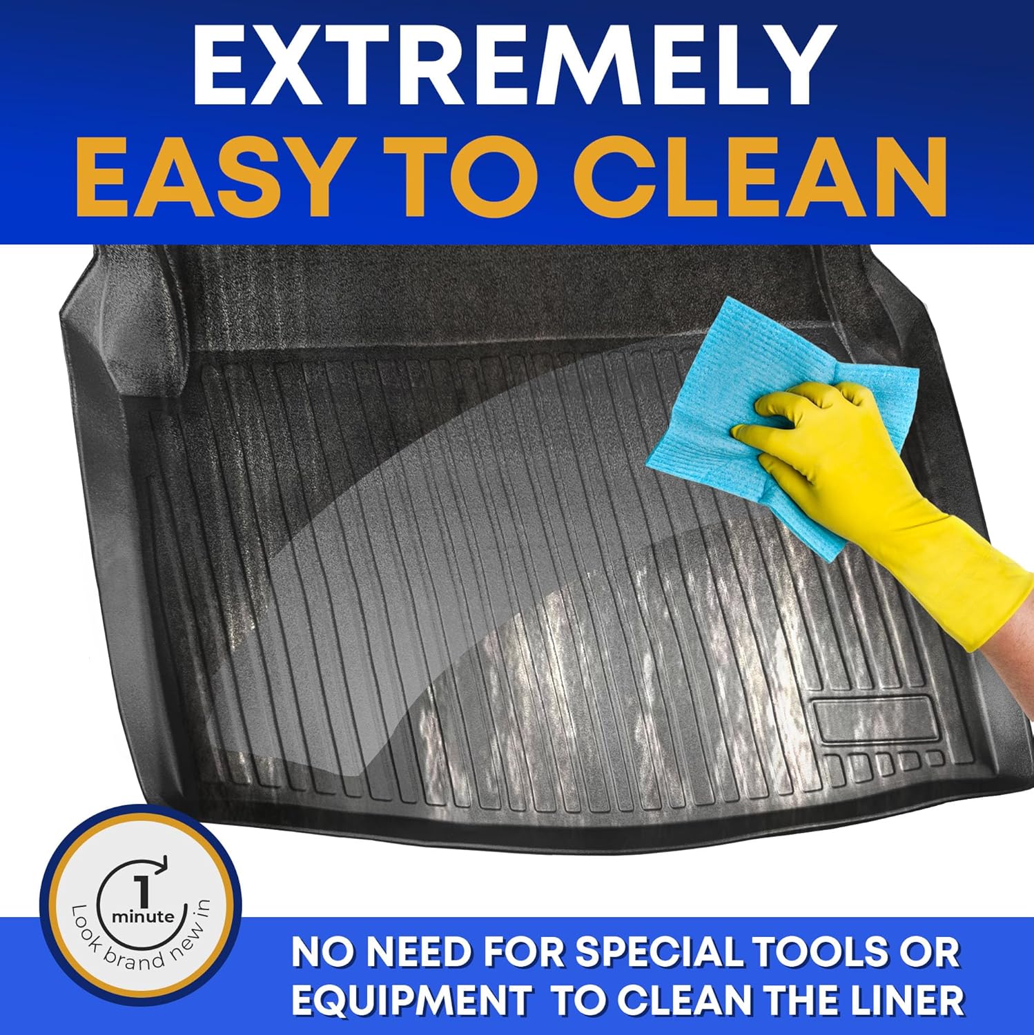 - Easy-To-Wash & Stain Resistant - The cargo mat liner for Sedan is a perfect option if you are tired of the mess in your trunk after every trip. Forget the spending hours cleaning the trunk, our mat is easily washable, just rinse it with running water. The surface is stain-resistant, which makes it looks new even after years of use!