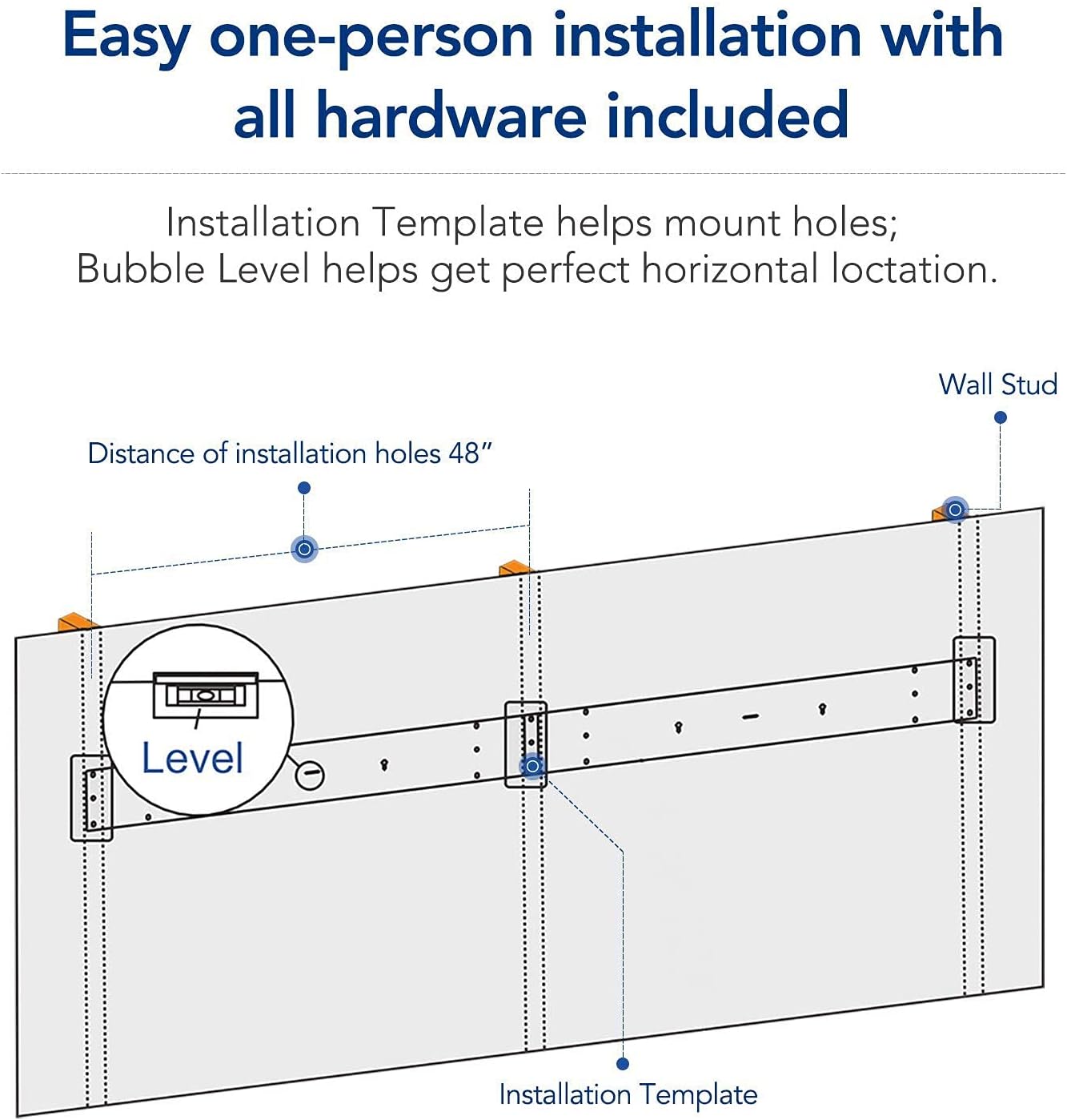 - (Assembly needed DIY project) Easy one-person installation with all hardware included. Installation Template helps mount holes. Bubble Level helps get perfect horizontal location. Noteworthy is the inclusion of four shelf wall brackets and one reinforcing plate in the package.