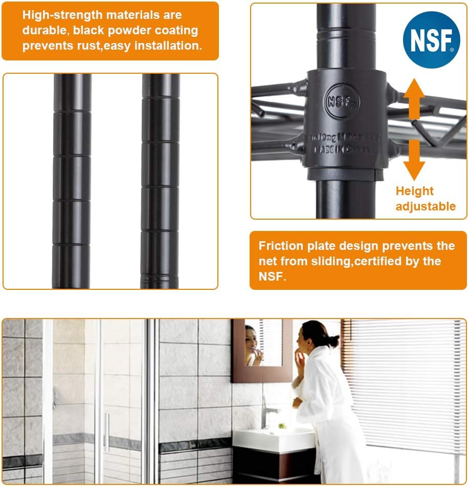 - √【LARGE AND STURDY】:The wire shelving unit provide an enormous amount of space and strong shelves. The metal shelf doesn't occupy too much space,but it can create more additional space. The storage shelves use durable steel construction,and to resist dirt buildup and corrosion. Maximum weight capacity per shelf is 150lbs when equally distributed on feet levelers.Maximum entire unit weight capacity is 220lbs when equally distributed on casters.wire shelving unit metal shelf storage shelves.