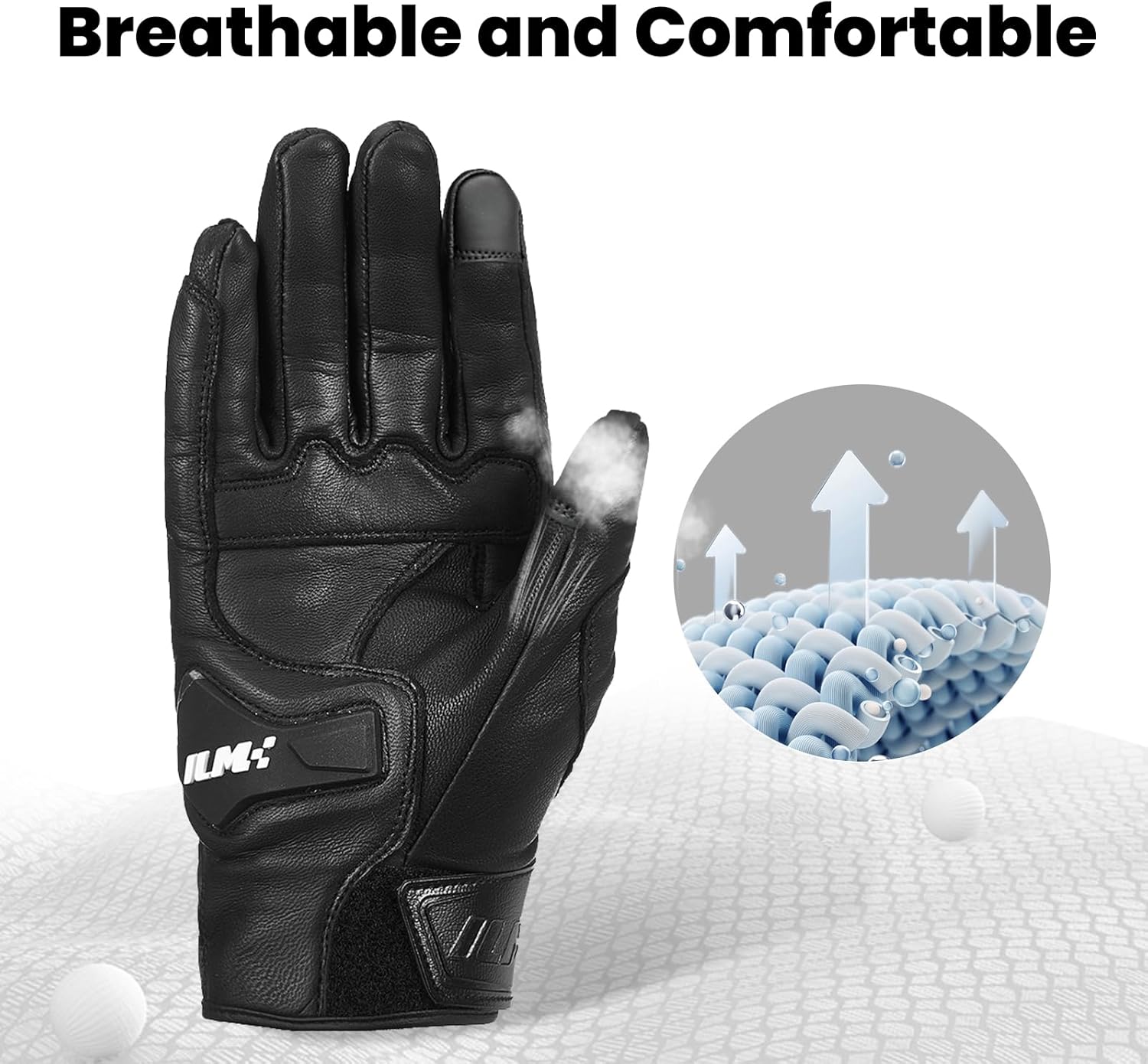ILM Goatskin Leather Motorcycle Motorbike Powersports Racing Gloves Touchscreen for Men and Women Model DN01(S, Black Unperforated)