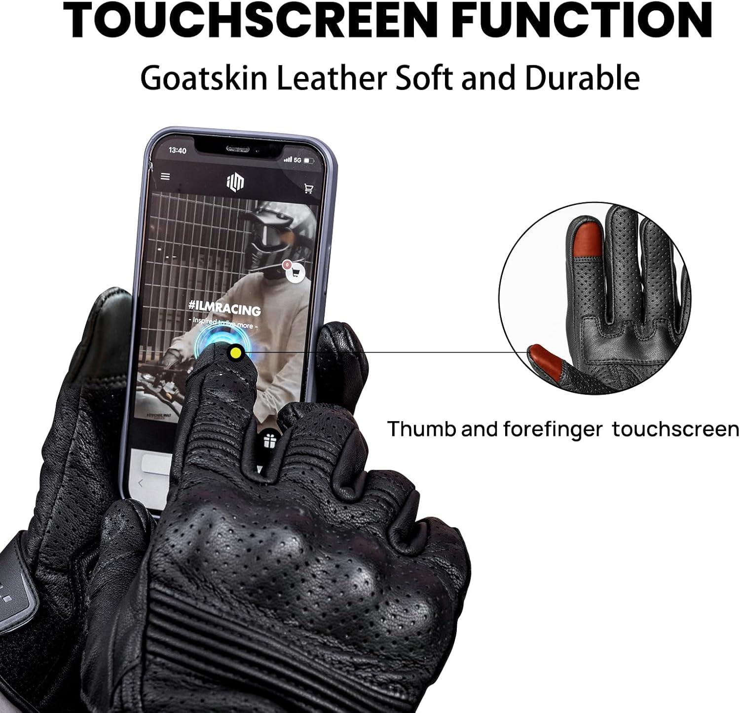 ILM Goatskin Leather Motorcycle Motorbike Powersports Racing Gloves Touchscreen for Men and Women Model DN01(XXL, Black Perforated)