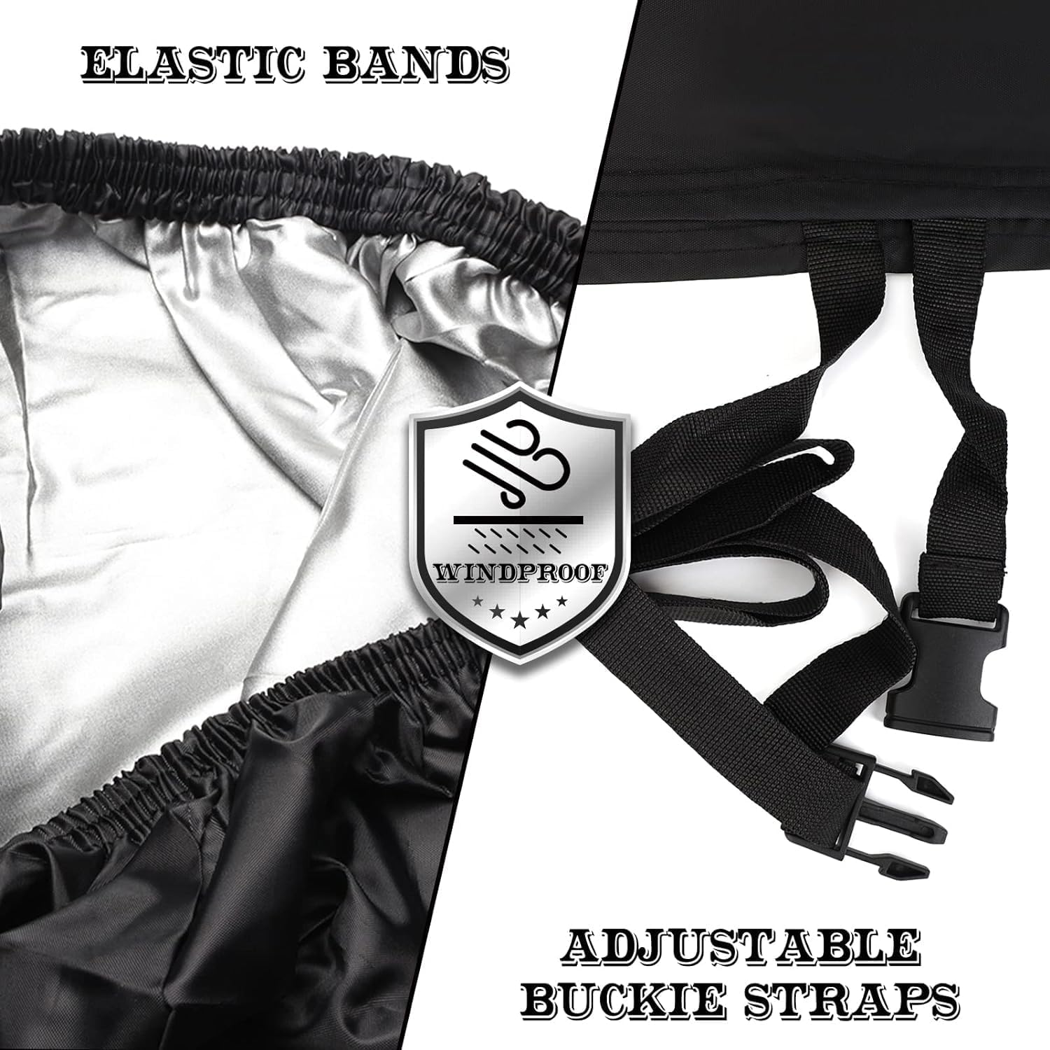 - [Durable Materials]: This utv cover is made of 300D waterproof oxford material, the elastic band around the bottom and adjusted straps in the middle of the bottom better fit to the vehicle like a glove and stay in place