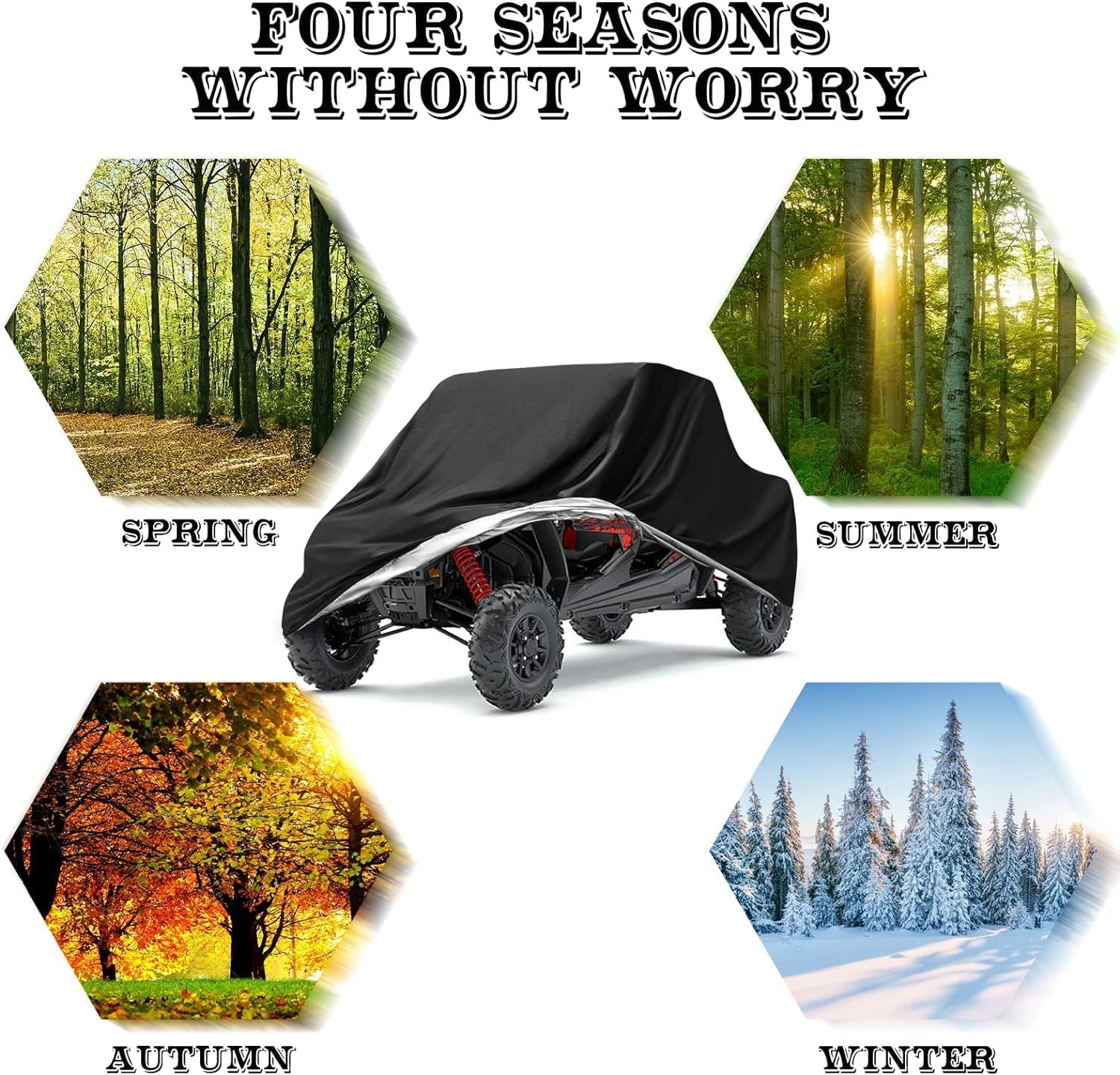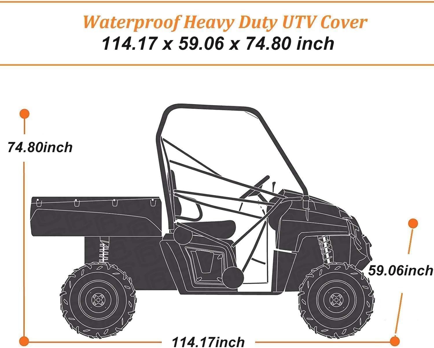 - [Protect Your UTV]: Your UTV can withstand all kinds of rain, snow, ice, dirt and more. preserve your machine's paint and parts with this top quality cover for keep your UTV brand new