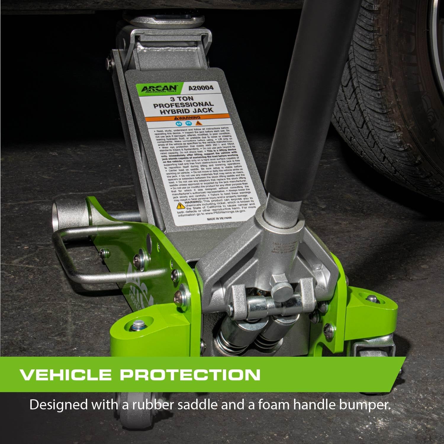ARCAN Tools 3-Ton (6,000 lbs.) Hybrid Heavy Duty Aluminum and Steel Low Profile Floor Jack with Dual Pistons Reinforced Lifting Arm (A20001)