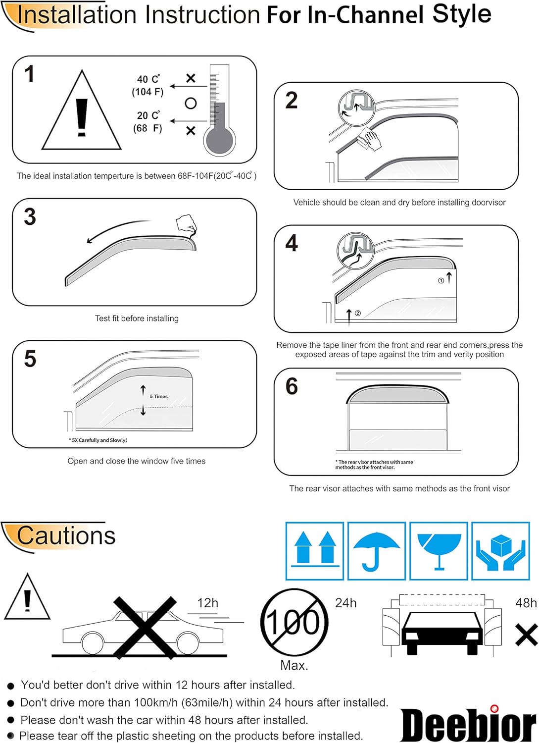 - Item Offered: 4pcs Wind Deflector window visors (Installation instruction is included,please check the sample installation picture above for reference);