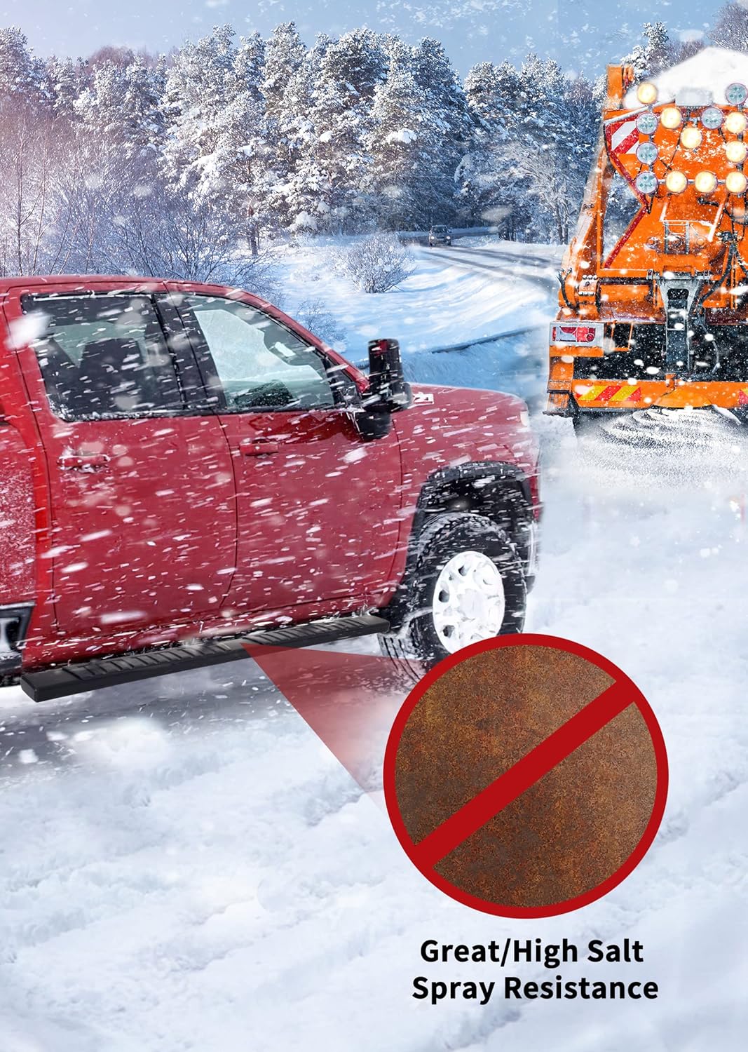 - [ UNIQUE DESIGN ] - High quality grade ABS Plastic Covered Slip-Resistant Aluminum side steps can prevent slipping and withstand the toughest weather conditions. Each side can handle up to 450lb (200kg)