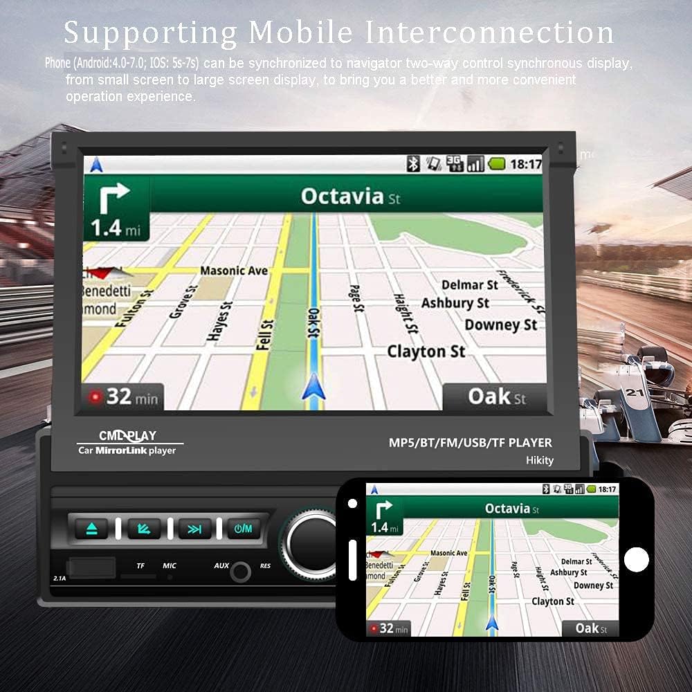 Hikity Single Din Touchscreen Car Stereo 7 Inch Touch Screen Car Radio, Automatic Flip Out Sceen Car Stereo with FM Radio, Bluetooth, Mirror Link, EQ, USB/TF/AUX Input, SWC, Backup Cam