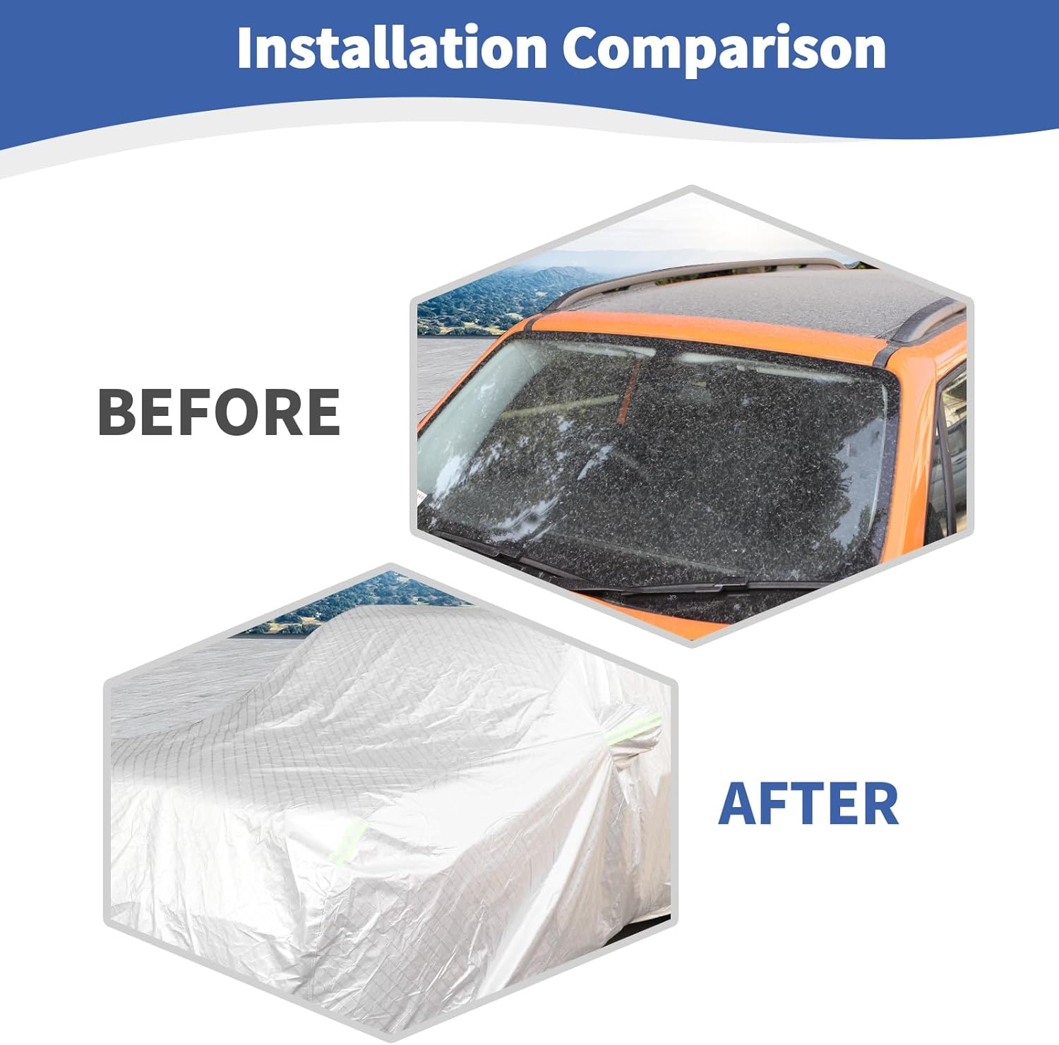 - SERVICE and All-round Protection: One year warranty, 24 hours online, Outdoor Car Cover will get rid of dirt, sand, dust, leaves, snow, frost, bird droppings and keep away from extreme temperatures. Just need use a wet towel to clean the car cover.