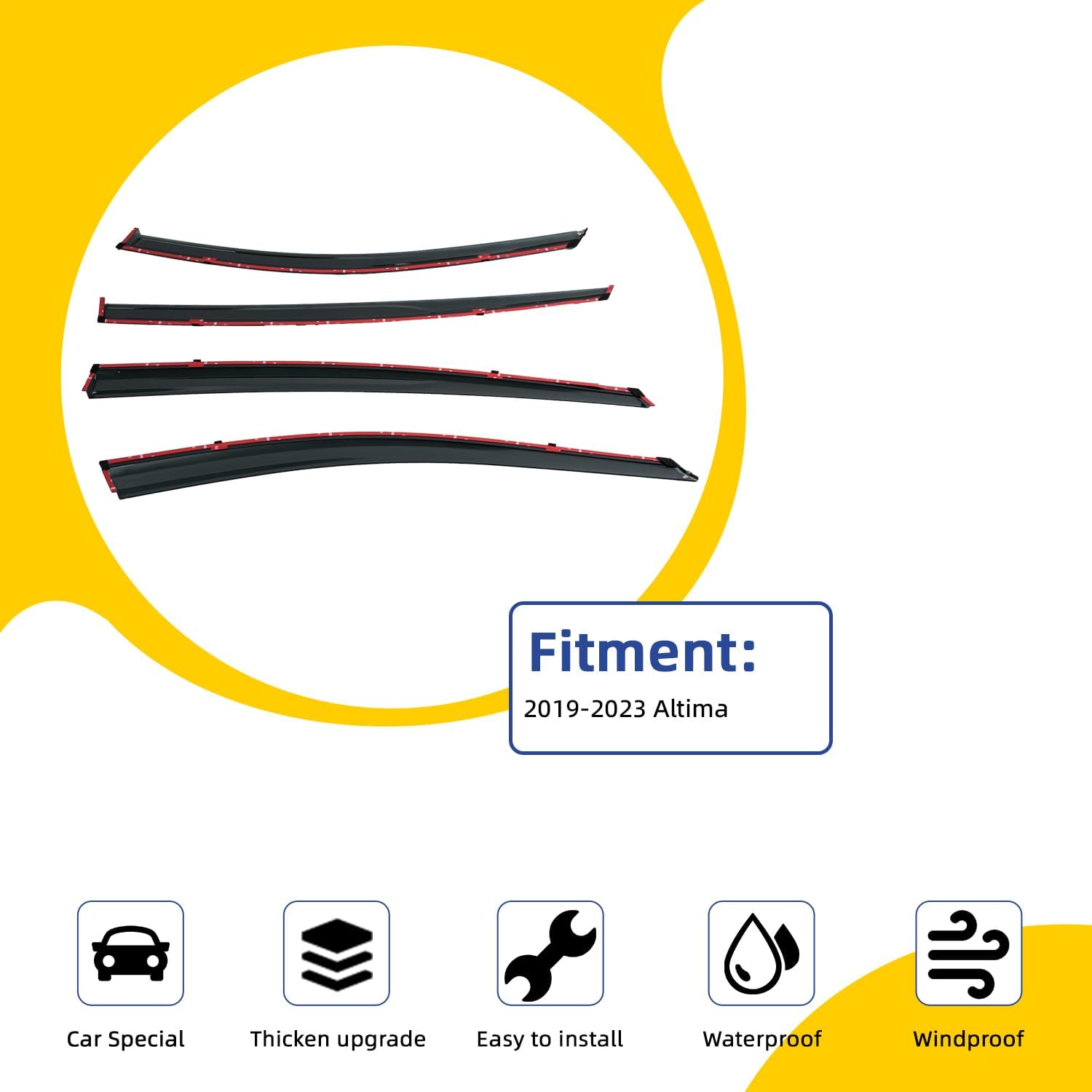4pcs Smoke Tint with Chrome Trim Window Visors Compatible with Compatible with 2019-2024 Altima Outside Mount Tape On/Clip On Style PVC Sun/Rain Guard Vent