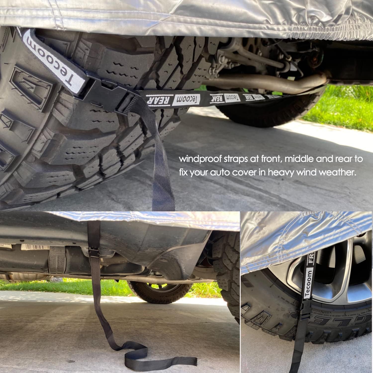 - 【All Weather Protection】Tecoom car covers is perfect for indoor and outdoor use, no matter the sun or the cold weather, protects your car safe from UV rays, snow, rain, frost, sand,dust, leaves, branches, birds dropping.