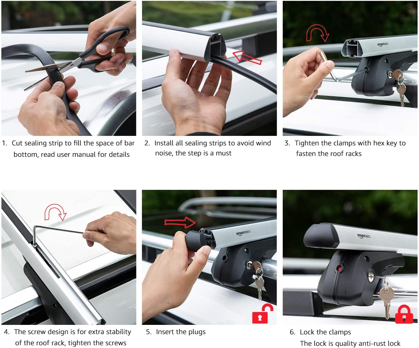 Amazon Basics Cross Rail Roof Rack, 56 inches, Fits up to 49.6" Spans between Raised Side Rails with Gap, Pack of 2, Black/Silver
