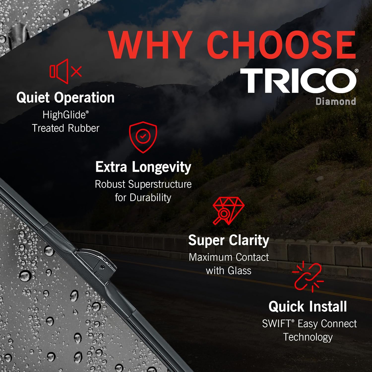 - POWERFUL PERFORMANCE: Our Diamond wiper blade exerts more pressure for superior clean and wiping edge to edge performance. Wind resistant aerofoil of up to 135 mph keeps your blades intact so you have a protective and safer view throughout use.