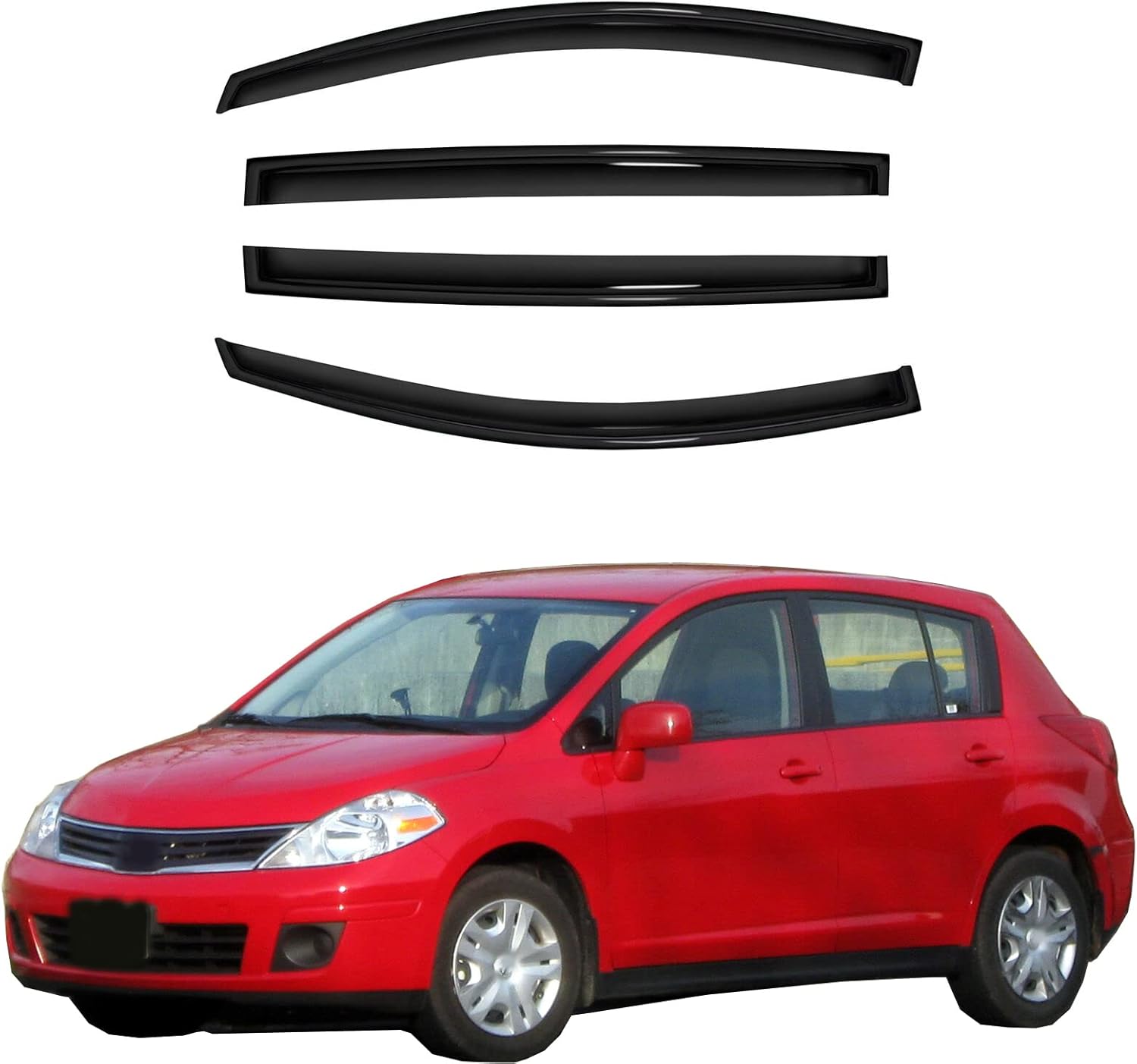 4pc Sun Rain Guards Window Visor Wind Deflector Compatible with Nissan Versa Hatchback 07-12/Sedan 07-11 Smoke 94009