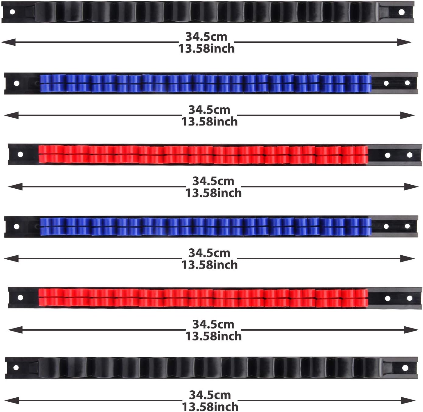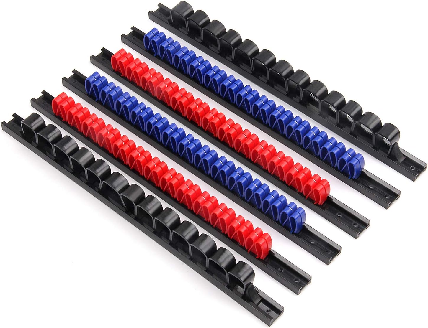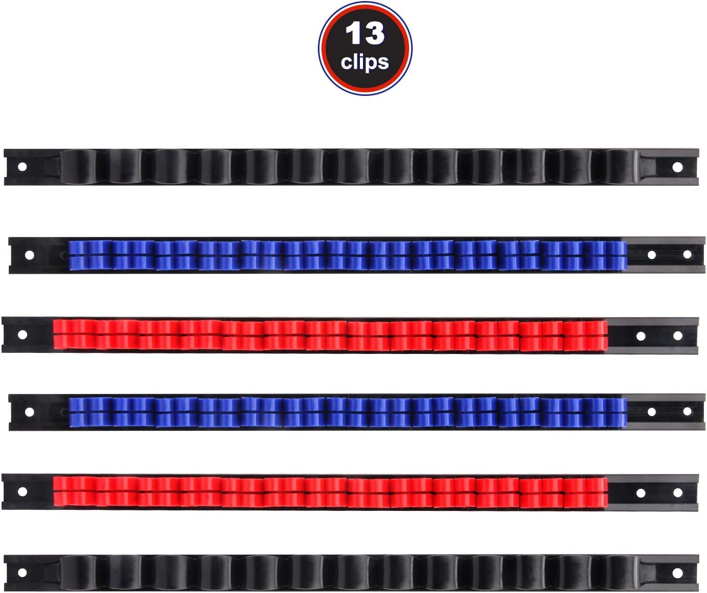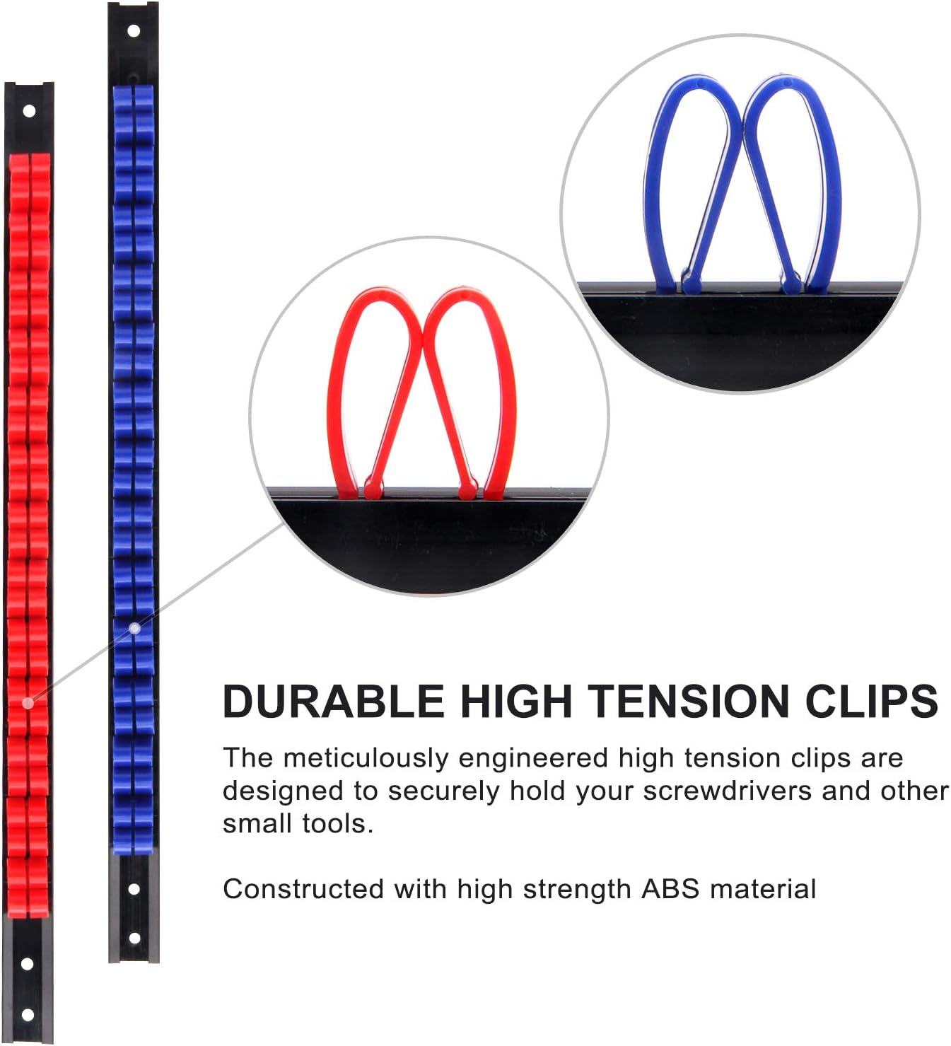 - Set includes 2 pcs screwdriver rails with 26pcs red clips, 2 pcs screwdriver rails with 26pcs blue clips and 2 pcs wrench rails with 26pcs black clips