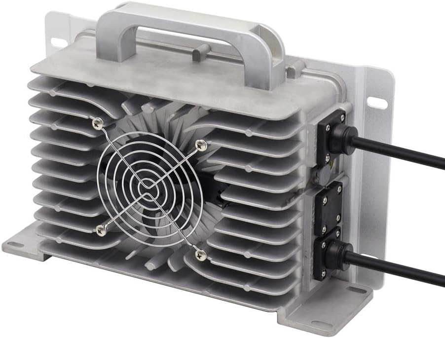 - [LIGHTWEIGHT DESIGN & CONVENIENT CARRY HANDLE] - Designed with convenience in mind, the waterproof charger weighs in at only 9 lbs and is more than 50% lighter than most OEM and aftermarket golf cart battery chargers. It is constructed with a durable die-cast aluminum alloy casing providing exceptional durability.