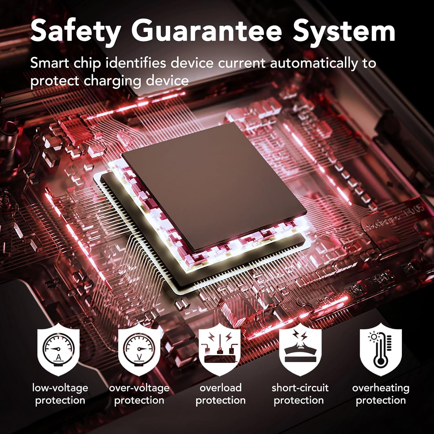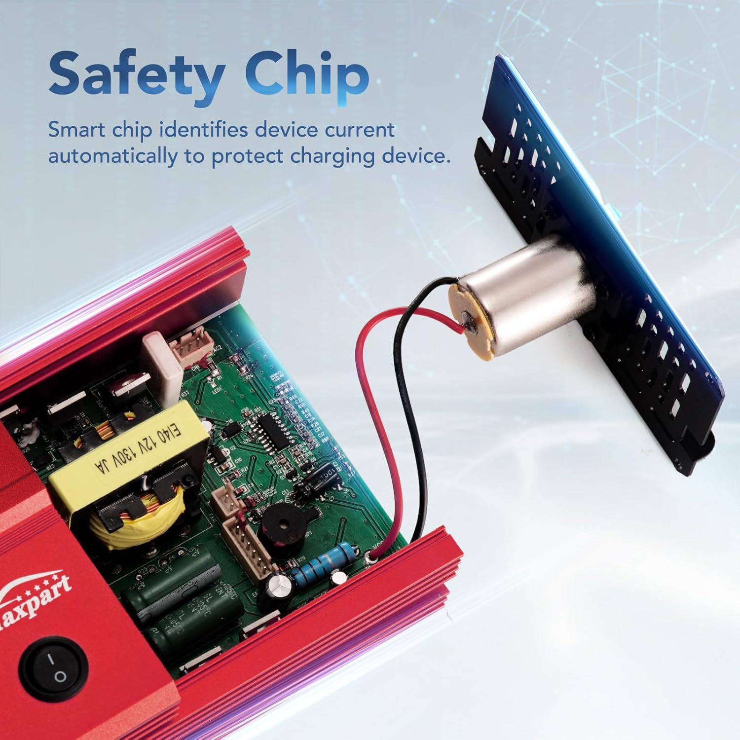 - Advanced Safety Protection:Cooling Fan & LED Indicator & Built-in 2 Mini Slip Fuse to protect against Over-current protection/ Short-circut protection/ Low-load protection/ Over-load protection/ Over-heating protection/ Over-voltage protection. Smart cooling fan will automatically rotate at different speed according to power load and temperature, this design can help to lower the fan noise.