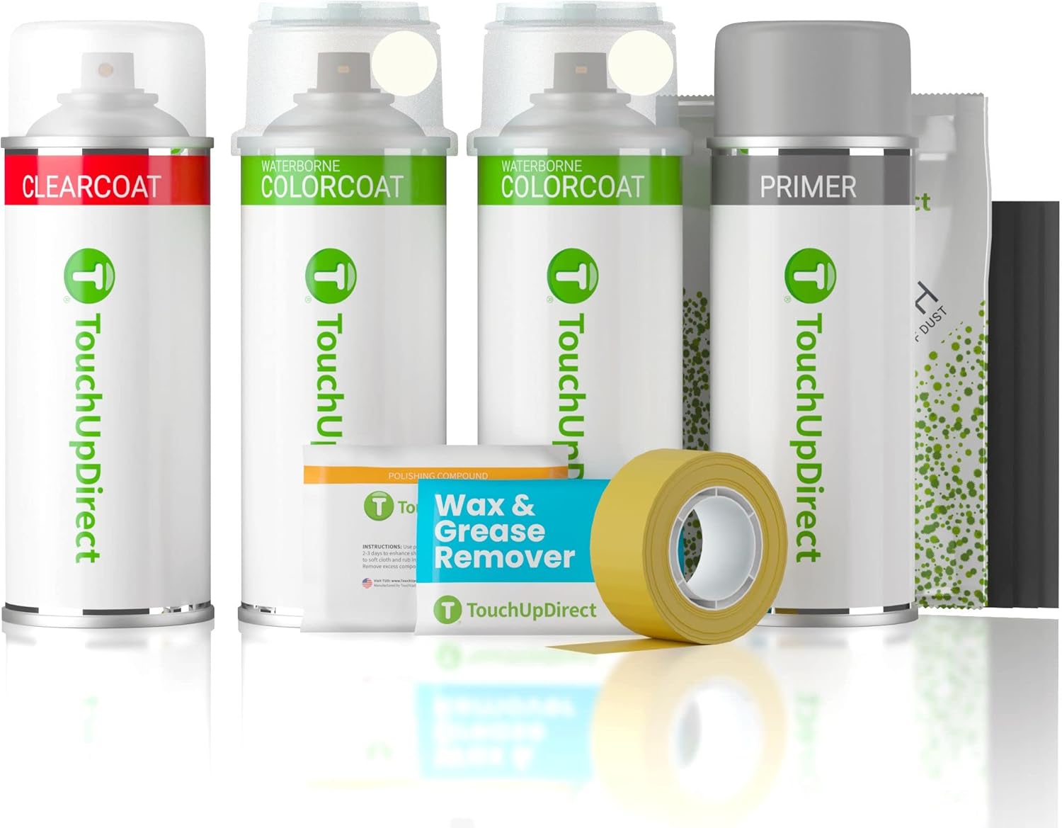 - Aerosol Platinum Touch Up Paint Kit includes automotive primer, Colorcoat, Clearcoat, and essential tools: Wax & Grease Remover Wipes, Tack Cloth, sandpaper, Polishing Compound, and Masking Tape. Coverage: 3-4 cans for hoods/trunk lids, 2-3 cans for bumpers, 1 can for mirrors. Perfect for car paint scratch repair.