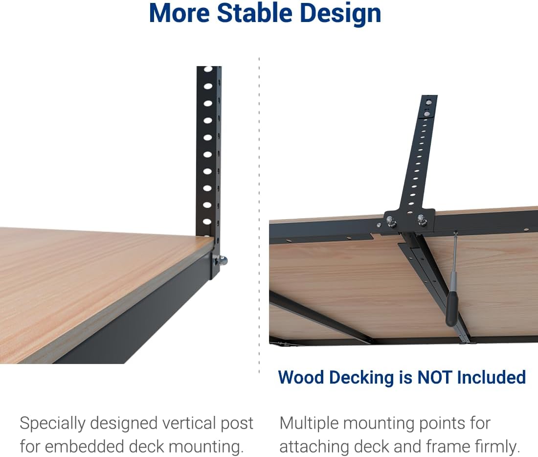 - IMPORTANT: Does not come with wire decks or wooden decks. FLEXIMOUNTS recommends 4'x8' size and at least 3/8" thick plywood. Customize the color of your wooden decks to your liking, or recycle your old wooden boards.