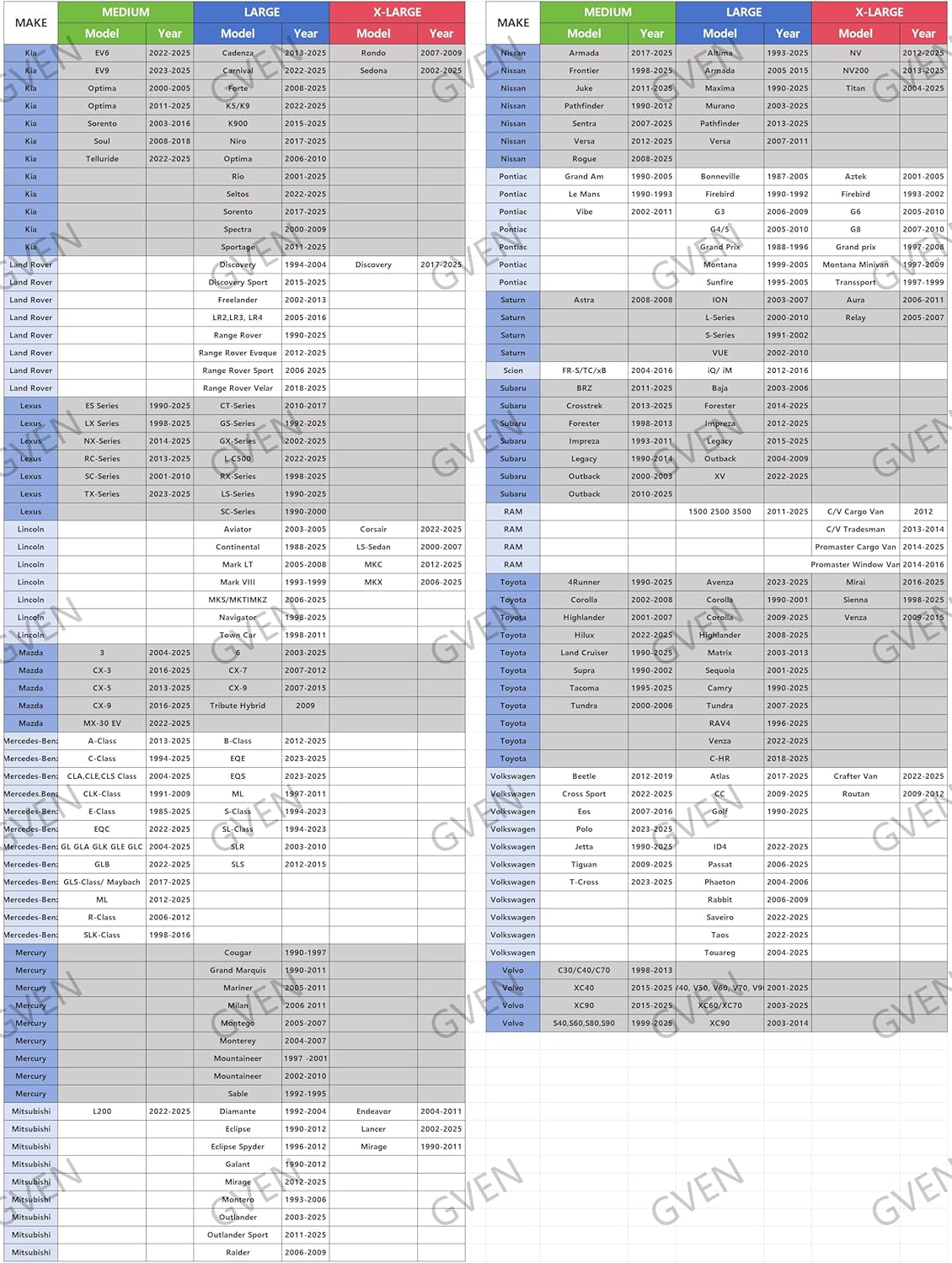 - Vehicle Service Type Car, Truck, Van : Material Polyester