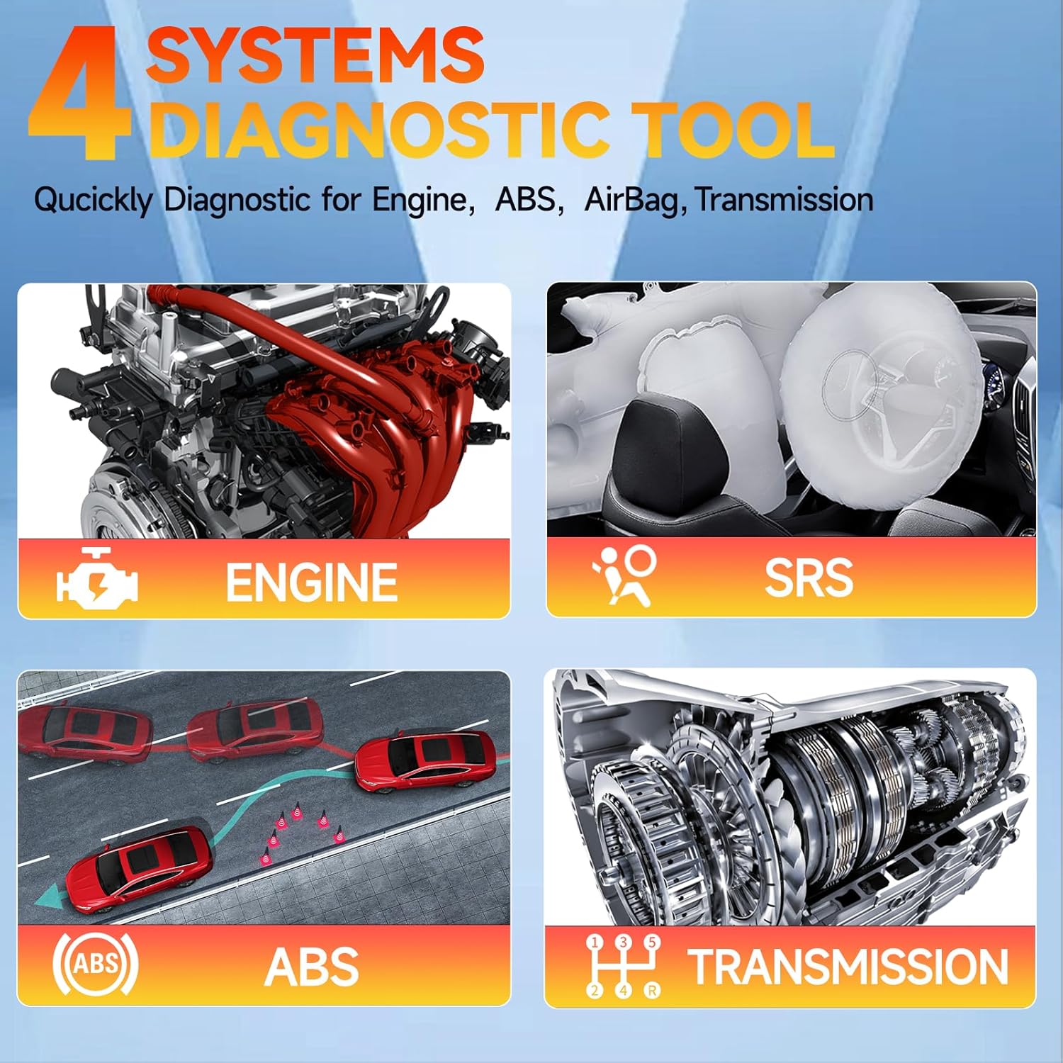 - 【ENGINE/ABS/SRS/TRANSMISSION CODE READER】Don't know what's wrong with your car when the warning light of ABS, transmission, SRS, Engine flashes? NT614 Elite obd2 scanner can pinpoint the problem components. It boasts many functions of engine, abs, srs and transmission such as read & erase fault codes and grapgh live data like engine temp, wheel speed sensor, read transmission temperature, etc. Compared with car repairs, using foxwell nt614 elite is more convenient and a-ffordable.