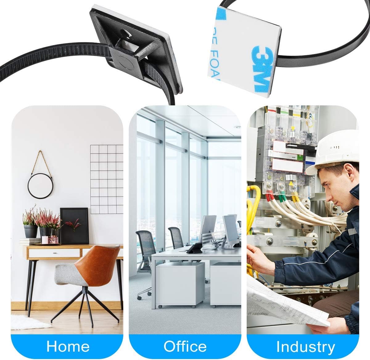 - High quality material:XHF adhesive zip tie mounts are manufactured from 3M Strong Adhesive and PA66 nylon.