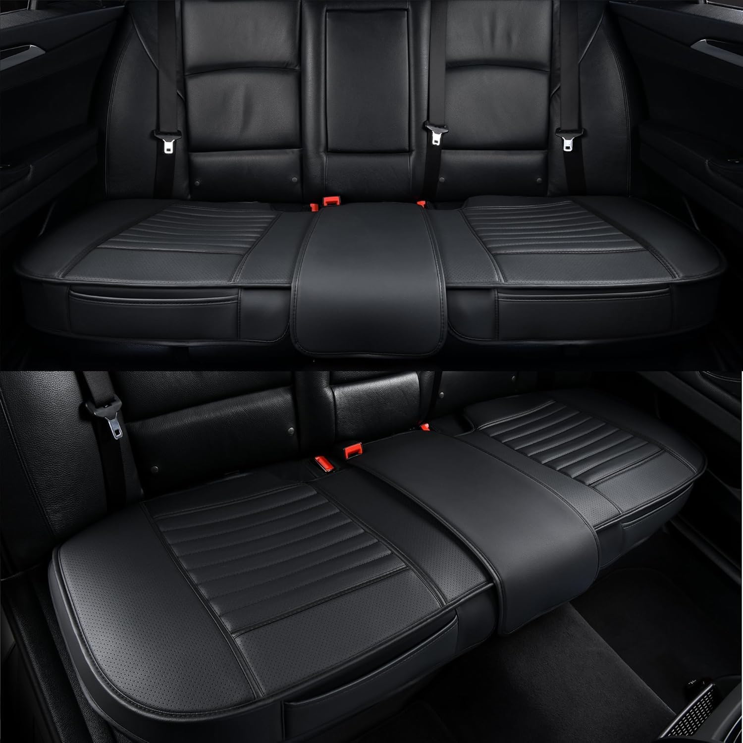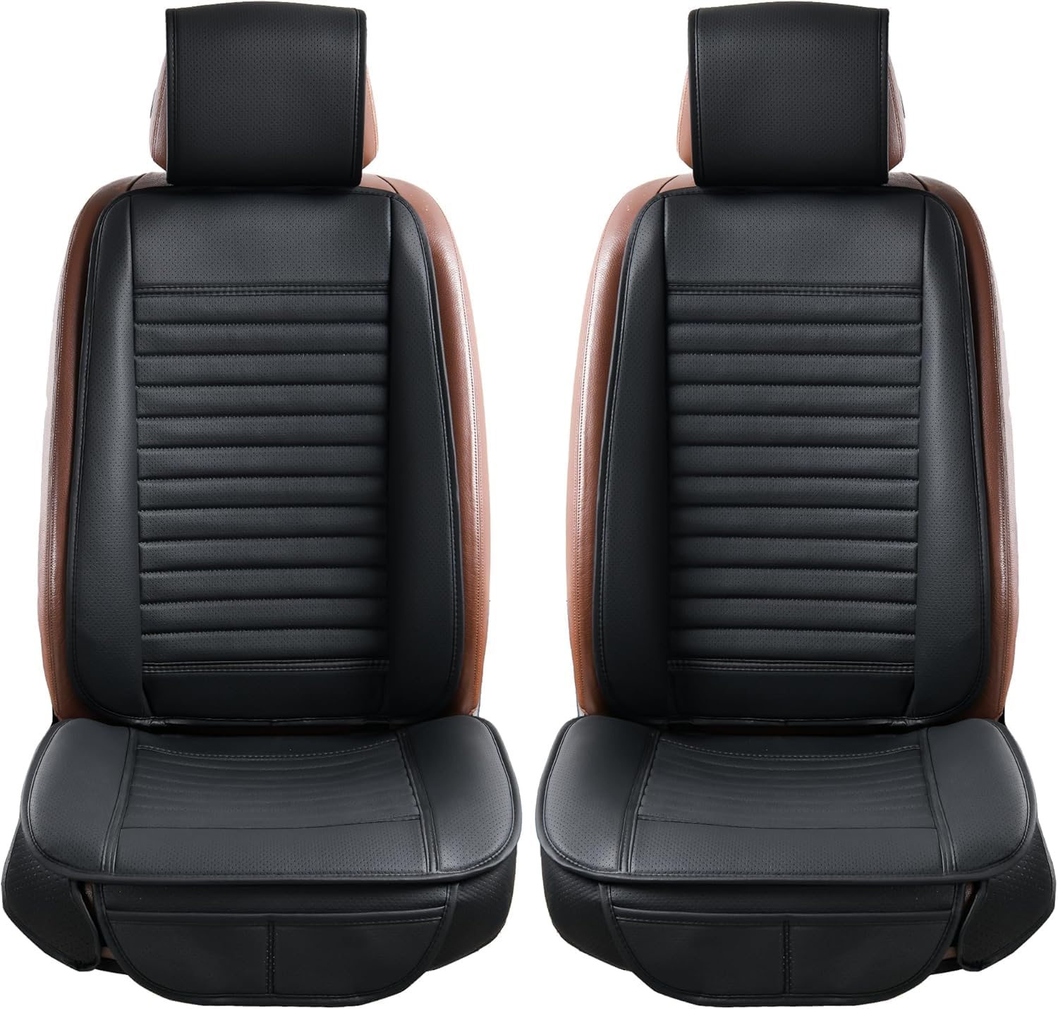 - 🚗Premium PU Leather Material-The auto seat cover is made of high-grade soft PU leather, waterproof, easy to scrub, durable and good breathability. Built-in a layer of highly flexible sponge, four seasons applicable. Maintain the comfort of the buttocks, helps relieve pressure on hips and thighs from driving for a long time. At the bottom of covers is rubber sole which prevent falling off from your car driver seat.