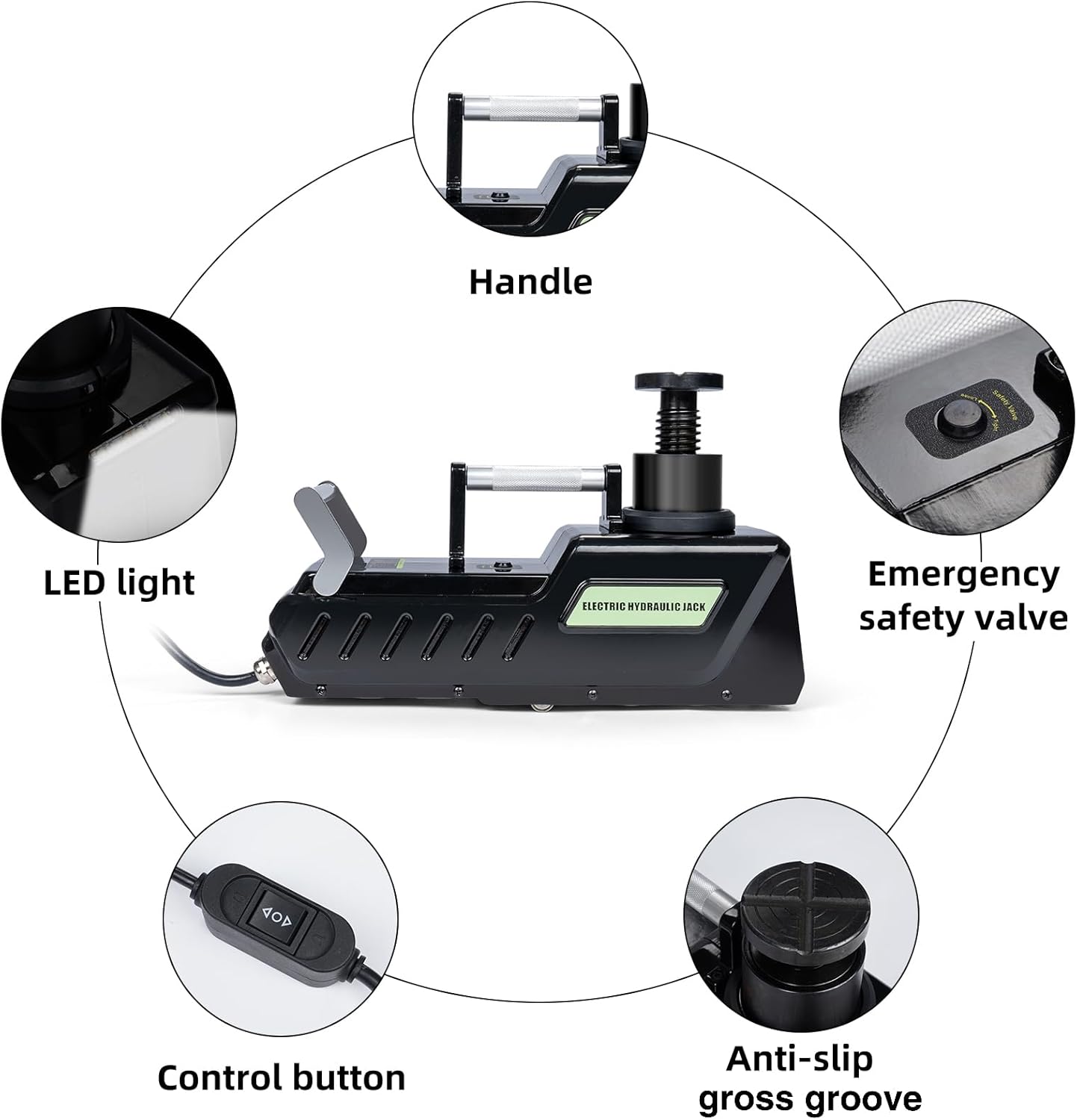 - 【Widely Application】 The 15 Ton Electric Hydraulic Jack is perfect for emergency use,whether you are in your family garage or Automobile repair shop, or on the way to travel, you can use it in case of emergency. This electric car jack is also widely applicable to various models, such as cars, motorhomes, SUVs, Recreational vehicle, trucks, etc.
