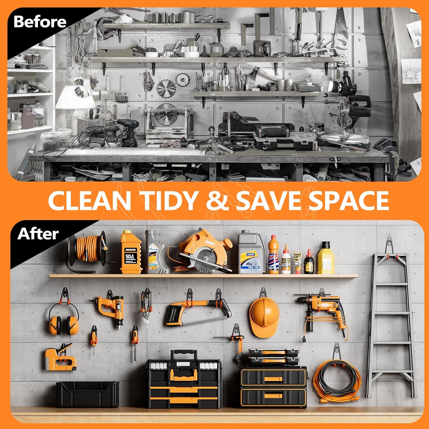 - Multi-Purpose Organization: Perfect for organizing your garage, garden, shop, shed, or basement. These hooks are ideal for hanging ladders, cleaning tools, gardening equipment, power tools, bicycles, and more, helping you maximize space and keep everything in order