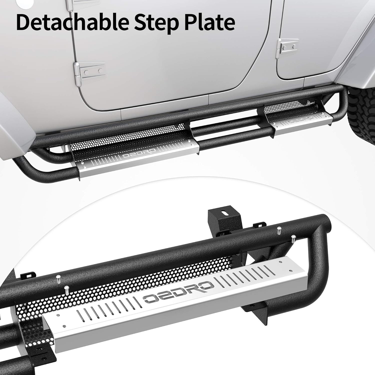 - Compatibility: OEDRO step bars feature a distinct drop-down step design that’s perfectly compatible with the latest 2007-2018 Jeep Wrangler JK & Wrangler Unlimited 4 Door.